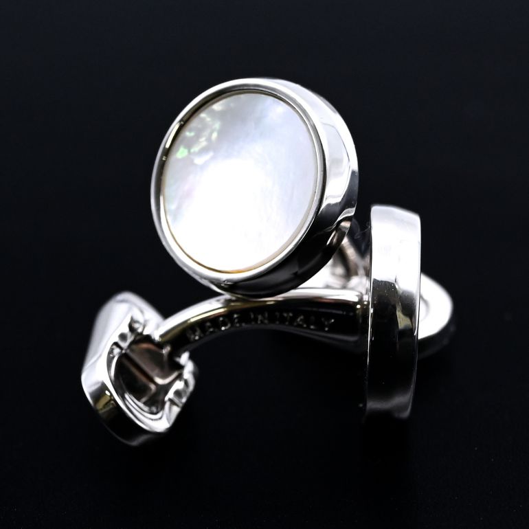 エントリー買いまわり最大19倍!モンアート MONART カフス メンズ カフリンクス カフスボタン ラウンド型 シルバー マザーオブパール AGRI SP RGC A Made in Italy 半貴石 名入れ可有料
