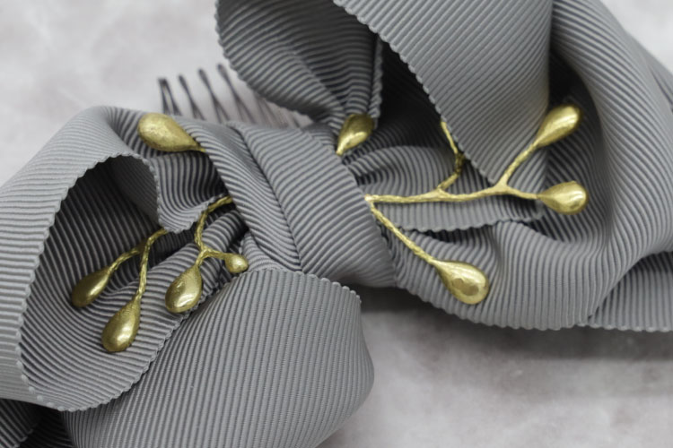 髪飾り 成人式 振袖 グレー 着物 袴 和装 卒業式 結婚式 ヘアアクセサリー ハンドメイド 古典 モダン sy-007【糸久莉】コーム付き飾り1点