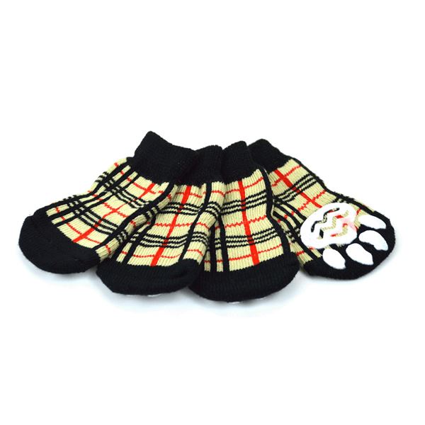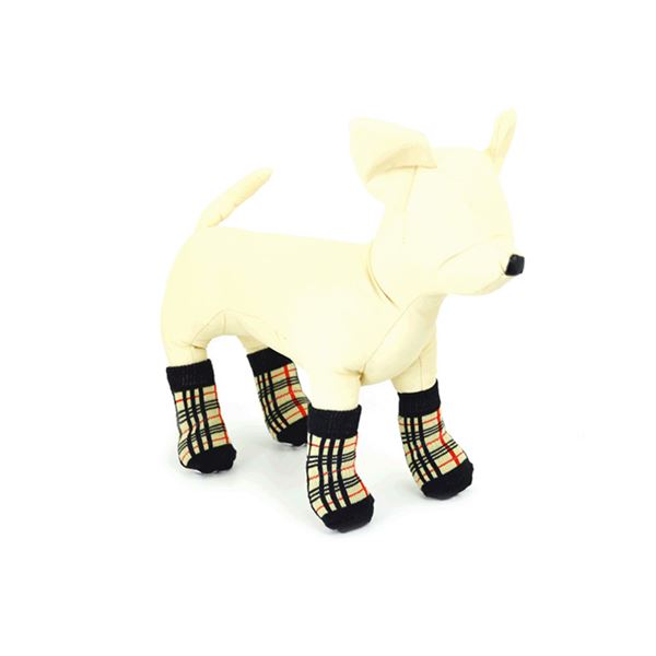 (まとめ)L'ange ペットソックス4足セット check beige S 犬用靴下【×2セット】