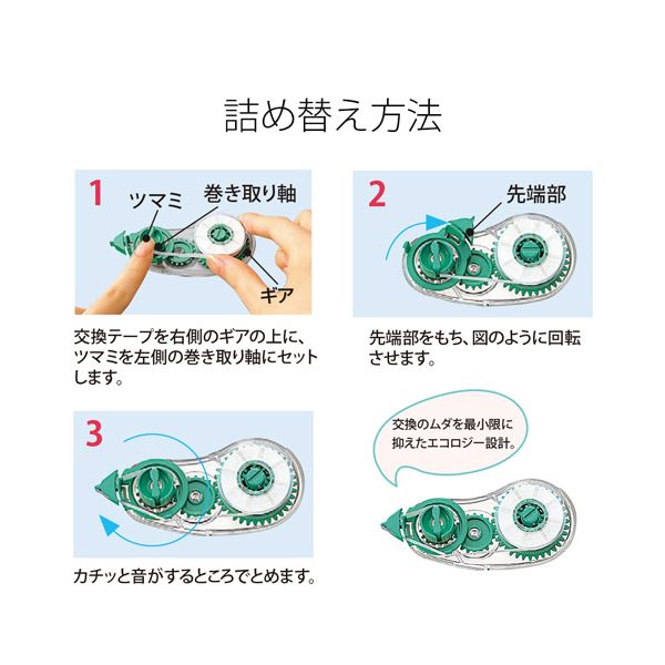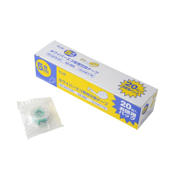 プラス 修正テープホワイパーエコ 交換テープ 徳用パック 5mm幅×7m グリーン WH-305TR-20P 1パック(20個)