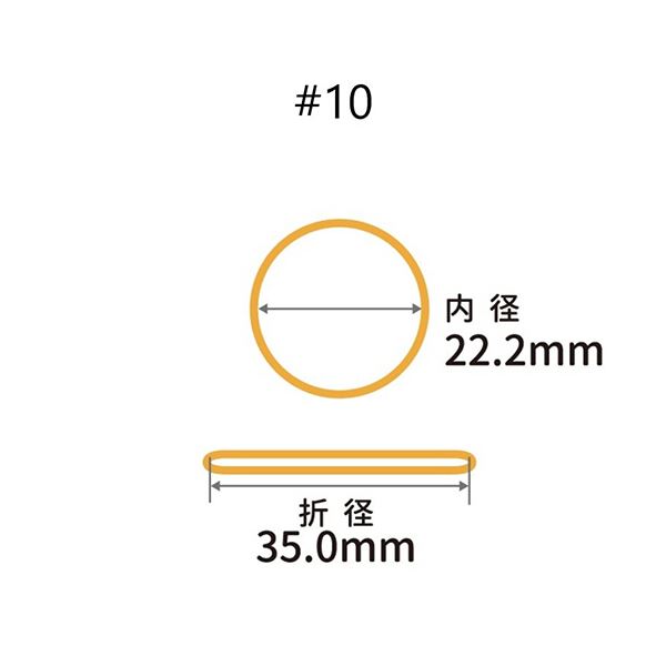 ■商品内容【ご注意事項】この商品は下記内容×3セットでお届けします。結束、包装、縫製などに広範囲に利用でき、作業性、経済性に優れています。●番手#10のゴムバンド、気軽に使用しやすい少量包装・50g。●少量なので、家庭用やオフィス事務用品、サイズお試し用(試作用)などに。●良質の天然ゴムを使用し、菓子のアメに似た色をしているところから、「アメバンド」もしくは「アメ配合」と呼ばれています。■商品スペックサイズ:#10色:アメ内容量:50g切り幅:1.1mm内径:22.2mm折径:35mm厚さ:1.1mm材質:天然ゴムその他仕様:●参考平均本数:約580本●推奨結束径:110〜300mm(1重巻きを想定した参考値)シリーズ名:オーバンド■送料・配送についての注意事項●本商品の出荷目安は【5 - 11営業日 ※土日・祝除く】となります。●お取り寄せ商品のため、稀にご注文入れ違い等により欠品・遅延となる場合がございます。●本商品は仕入元より配送となるため、沖縄・離島への配送はできません。