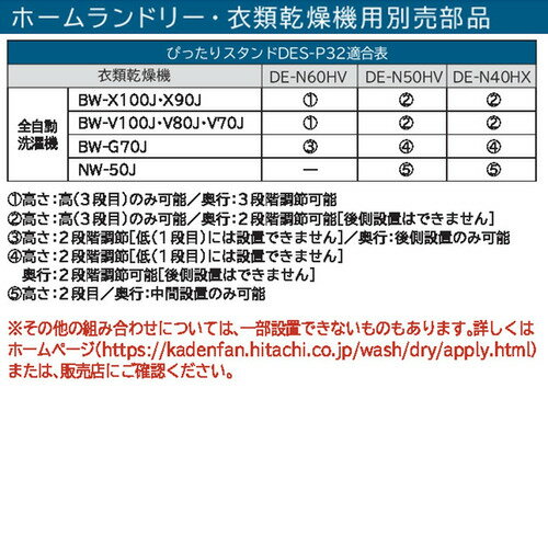 こちらの商品は単品でご購入いただく際は、表示金額とは別に配送料2200円を頂戴いたします。衣類乾燥機とセットで購入の際は配送料は発生いたしません。予めご了承ください。日立 DES-P32-S 日立衣類乾燥機専用 直付けスタンド 「ぴったりスタンド」発売日:2015年11月中旬●ぴったりスタンド組み立て簡単な衣類乾燥機用も「ぴったりスタンド」です