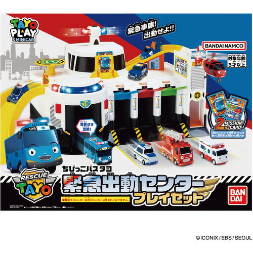 ※画像はイメージです。パッケージデザイン等は予告なしに変更されることがあります。※メーカーの欠品や製造中止により納期遅延、またはお届けできない場合がございます。※商品のパッケージ等につきましては商品本体の保護材のため、凹み、擦り傷や細かい傷等が付いている事があります。通常このような状態は返品・交換の対象外とさせていただいておりますので、何卒ご理解ご了承の程お願い致します。明らかな破損・不良が見られる場合は、良品との交換をさせていただく場合もございます。※発売済みの商品につきましては店舗併売の為、セキュリティタグが付いている場合がございます。※多くのお客様にご購入いただくため、同一住所や同一連絡先等で同じ商品を複数ご購入されたご注文はキャンセルさせて頂く場合がございます。また、弊社にて転売目的と判断させて頂いた場合もご注文をキャンセルさせて頂きます。それらの場合の返金手数料等はお客様負担となります。※掲載の商品が発売日前の場合、商品の発送は発売日以降となります。※商品によっては(ショクガンなど)、BOX販売やセット販売でない限りは複数種類あるうちの1種類をランダムにお届けとなります。なお種類の指定はできません。また、BOX販売やセット販売でない場合でも商品画像を複数種類まとめている場合がございます。内容をお確かめの上、ご注文ください。※ご注文頂くタイミングにより、品切れやメーカー製造中止によって商品のお届けが遅れたり、納品不可の場合がございます。今後の入荷予定を確認し、入荷が困難な場合は、誠に勝手ながらご注文はお取り消しさせて頂きます。※購入特典やキャンペーンについて記載がない商品に関しましては、特典は付属いたしません。また、店頭で行われているキャンペーンにつきましてはネット販売では対象外となる場合がございます。※発売日が異なる商品やお取り寄せ商品を同時にご注文された場合、すべての商品が入荷次第発送となります。※以上、あらかじめご了承の上、ご注文ください。メーカー名:バンダイ商品名:TAYO ちびっこバス タヨ 緊急出動センタープレイセット 【商品詳細】●大人気ちびっこバス タヨから「緊急出動センター」がプレイセットになって登場!滑り台やリフト、さらにはボタンを押すと一斉にミニカーが飛び出す車庫など様々な楽しいギミックを搭載!光る鳴る機能もあり、付属のカード2枚を入れ替えて様々な音声遊びも楽しむことができます。光るミニカー1台付属。対象年齢:3歳以上(C) 2020 ICONIX Co.、 Ltd. All Rights Reserved.発売日:2025年11月8日