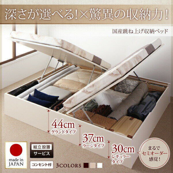 ベッド ベット マットレス付き 収納 収納付 収納ベッド 跳ね上げ 跳ね上げ式 跳ね上げベッド ガス圧 ガス圧式 日本製 国産 お客様組立 薄型プレミアムポケットコイルマットレス付 縦開 セミダブル 深さラージ 送料無料