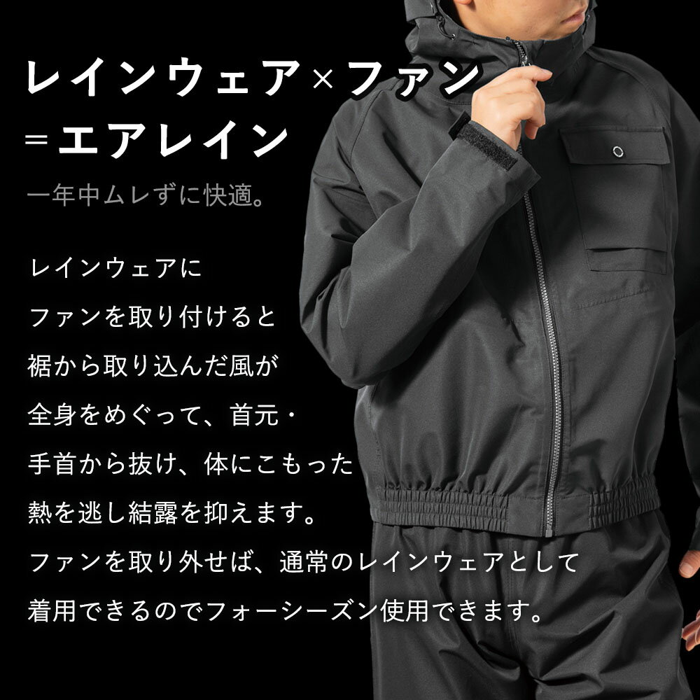 【全品20%OFFクーポン|12/4 20時〜2h限定】【ファン バッテリー別売】レインコート メンズ レディース 兼用 防水 エアレインプロ ショートブルゾン ファン対応 Makku マック 2色 5サイズ バイク 自転車 アウトドア 登山 通勤 通学 レイングッズ