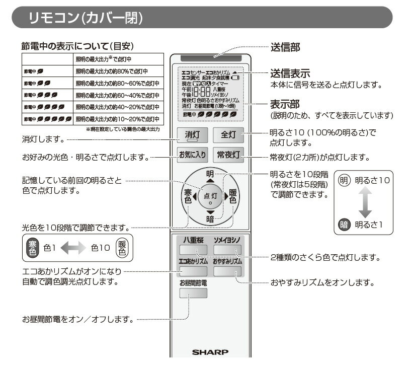 シャープ 照明器具用リモコン LEDシーリングライト用 電池別売 CRMCA032SDEZ(286 638 0018)