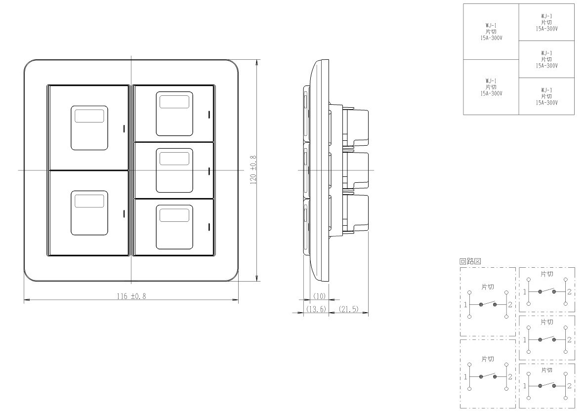 神保電器 J・WIDEシリーズ スイッチ組み合わせ 2連5個用 マーク付 片切 15A 300V ピュアホワイト WJHM23032PW