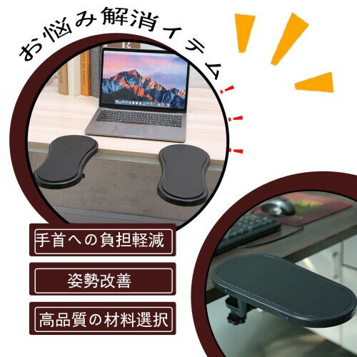 肘パーツ・肘掛け 肘置き デスク用 腕掛け 回転多角度 取り付け簡単 穴あけ不要 防汚・防水 デスクエクステンダー 肘と腕のサポートに利用できるアームレスト (黒)