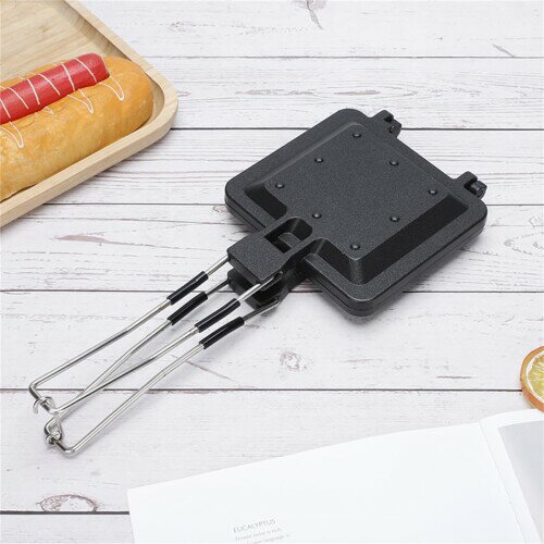 携帯可折りたたみ 多機能ホットサンドメーカー BBQ用 キャストアルミ製 フッ素樹脂コート トーストパン焼き器 コンパクトトースター 粘らない家用??? ギフトボックス付き ベルベッ