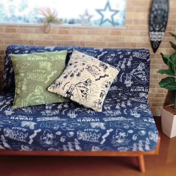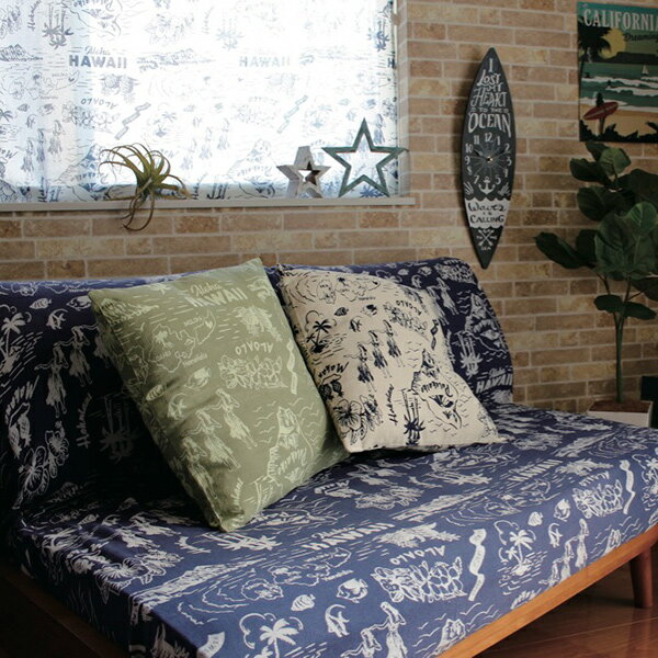 ヴィンテージ感のあるハワイアンデザインのマルチカバー・マルチクロス!全4色展開♪ 使い勝手がよく人気のマルチカバー。 お部屋を南国ムードに彩るハワイアン柄。 フラガールやハイビスカス、ヤシの木や熱帯魚などハワイアンモチーフが散りばめられています。 ソファーカバーとして、ベッドスプレッド・ベッドカバーなど目隠しに使えます。 マルチカバーをかけるだけで、お部屋がハワイアンやリゾートホテル風、西海岸・カリフォルニアのサーフスタイルに模様替えできます。 同じ柄のクッションカバーと色違いで合わせれば、さらに南国ムード満載です。 こちら≫ ・カラー:ネイビー/ナチュラル/オリーブ/サーモンピンク ・サイズ:W150×L225cm ・素材:コットン ※沖縄・離島はお届け不可商品となります。 大変申し訳ございませんが、沖縄・離島は発送することができません。 ご注文いただいた場合、メールにてご案内後、キャンセルとさせていただきます。あらかじめ、ご了承くださいませ。 ハワイアン家具・寝具・カーテンはこちら≫ ハワイの風を感じるインテリア商品はこちら≫