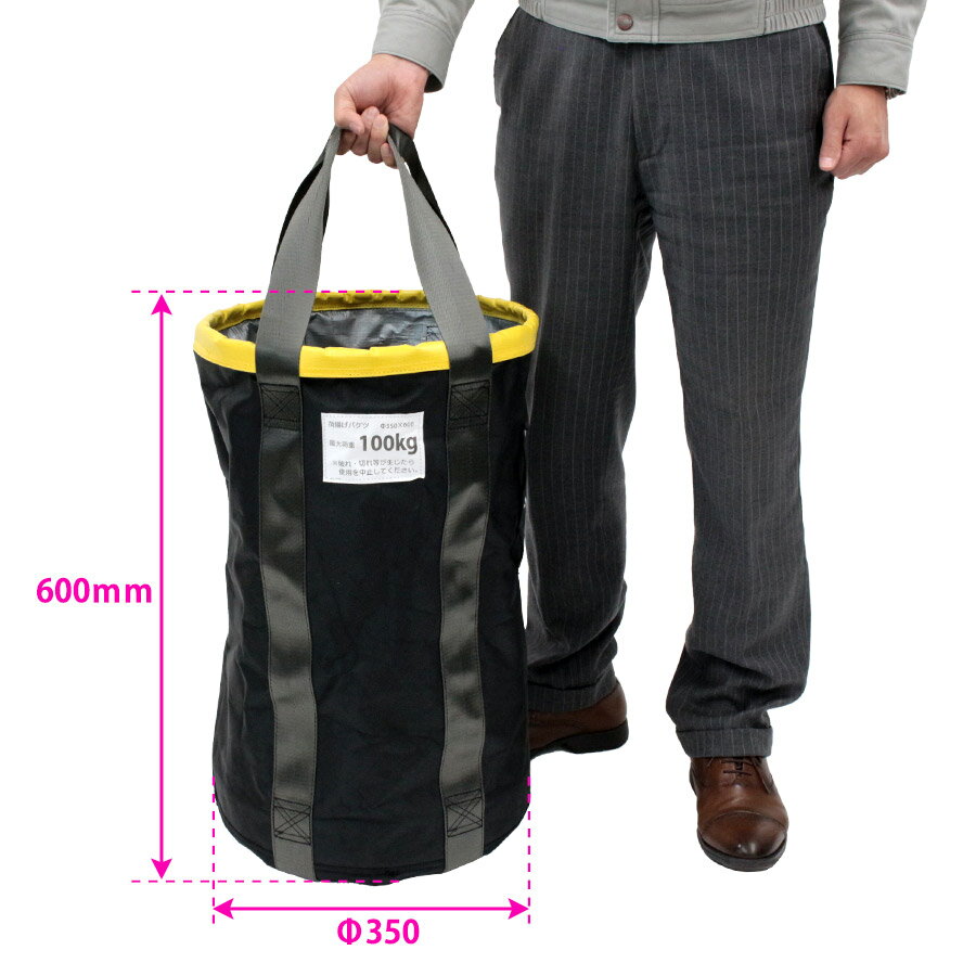 荷揚げバケツ Φ350×H600mm 最大荷重100kg リフトバッグ 電工バケツ トン袋 フレコン 荷上げ 荷下げ 吊り上げ バッグ モッコ 吊袋 揚重 下げ缶 玉掛け 手すり 筋交 ホイスト スリング キャッチャー ビッケ コンテナバッグ 筋交い