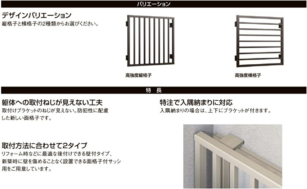 高強度面格子 06909 LIXILリクシル サッシ 窓 目隠し 後付け DIY リフォーム 防犯・セキュリティ