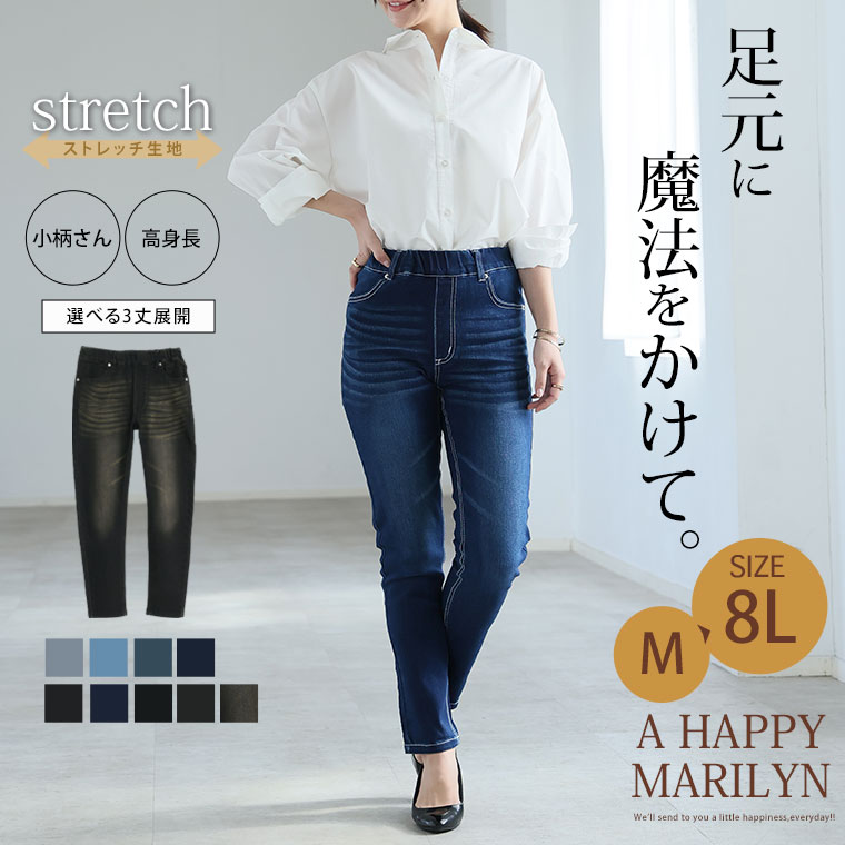 【4h限定MAX25%オフクーポン】 レディース パンツ | 新色追加!! 魔法の美ライン ストレッチ スキニー デニムパンツ _ 大きいサイズ デニム レギンス 美脚 ストレッチ ジーンズ レギパン レギンスパンツ M L LL 3L 4L 5L 6L 7L 8L 春 夏 ハッピーマリリン[448005]