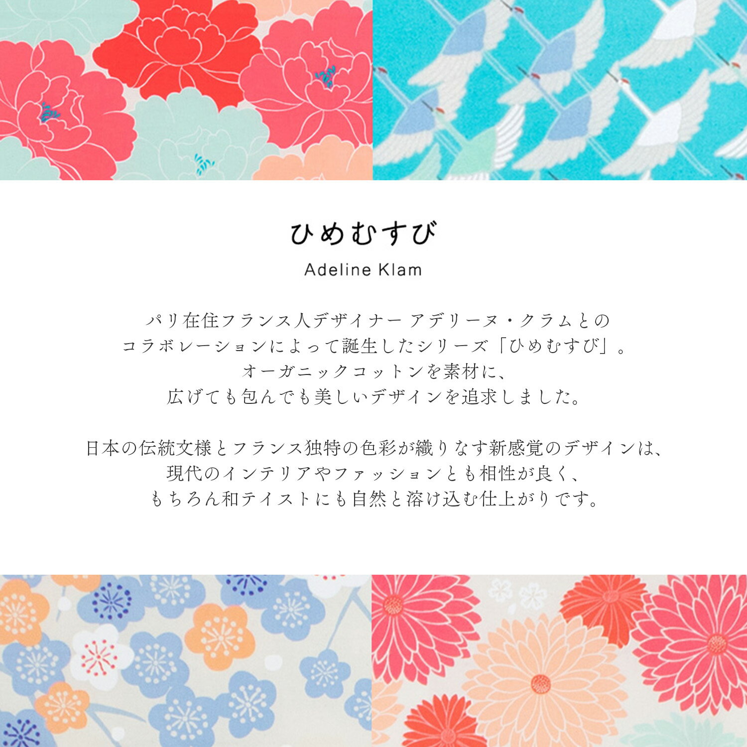 風呂敷 ひめむすび 50cm オーガニックコットン むす美 Adeline Klam 牡丹 お弁当包み かわいい 綿100% ふろしき ランチョンマット レッド ブルー イエロー オレンジ ピンク 梅 鶴 贈り物 プレゼント ギフト 可愛い