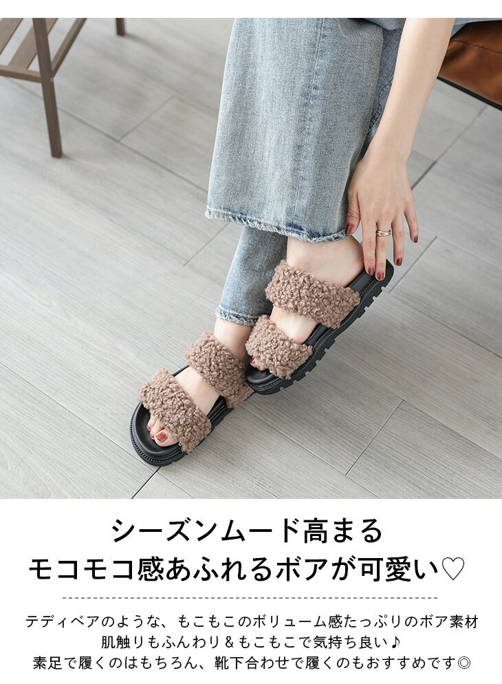 【60%OFFクーポン対象】ボア テディ サンダル エコファー シープ スイッチアイテム 秋 フラット ベルクロ ラクチン 靴 レディース おすすめ おしゃれ 2025秋冬新作 【ash507-125】【即納:1-5営業日】【送料無料】宅込