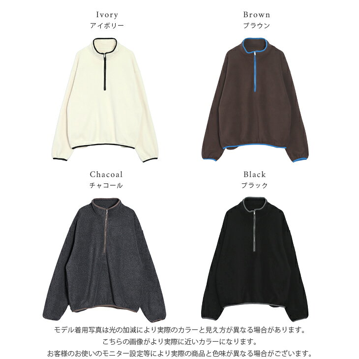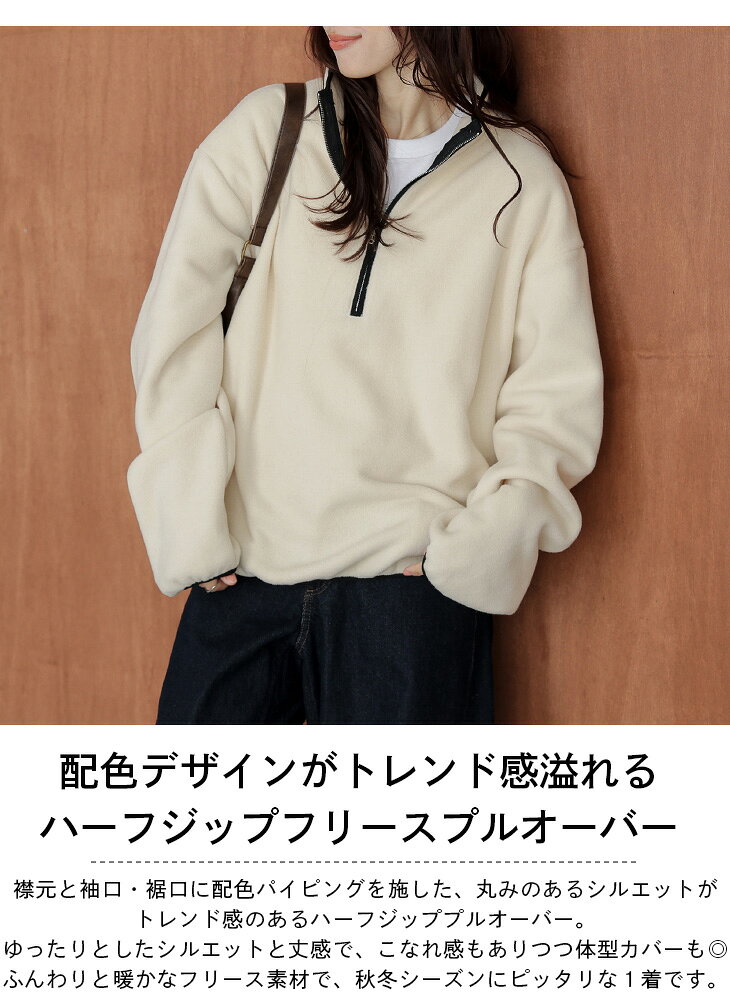 【半額クーポン対象】フリース プルオーバー パイピング 配色 バイカラー ハーフジップ トレンド 抜け感 トレンド カジュアル レディース 2025秋冬新作【aotaw25-1782】【予約販売:12月11日入荷予定順次発送】【送料無料】宅込