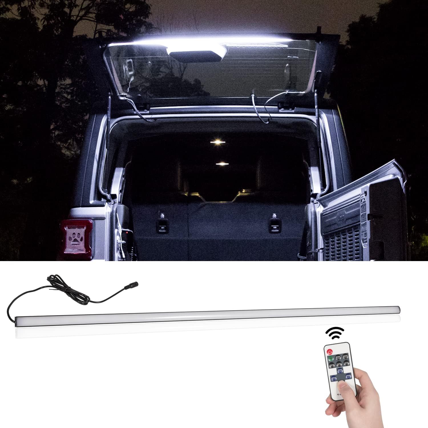 テイルゲートガラス LEDライト カーゴライトジープ JEEP JL JK ラングラー アメ車 ジープ 海外直送品 送料無料LED テールゲートインストール動画公開中 テイルゲートガラスに設置する照明用LEDライトです。リモコンによるオンオフ、明るさ調整、常時点灯などが可能ですので、ふだん使いからキャンプなどの暗闇での照明用途など幅広く利用できる便利なLEDライトです。Jeep Wrangler JK / JKU / JL / JLU および Gladiator JT(1997~2023年式)に対応。仕様が変更になりまして動画内の商品と形状が変わりました。取り付けは、弊社Youtube動画(ts-Jz-AESZ8で検索)をご参考ください。 5