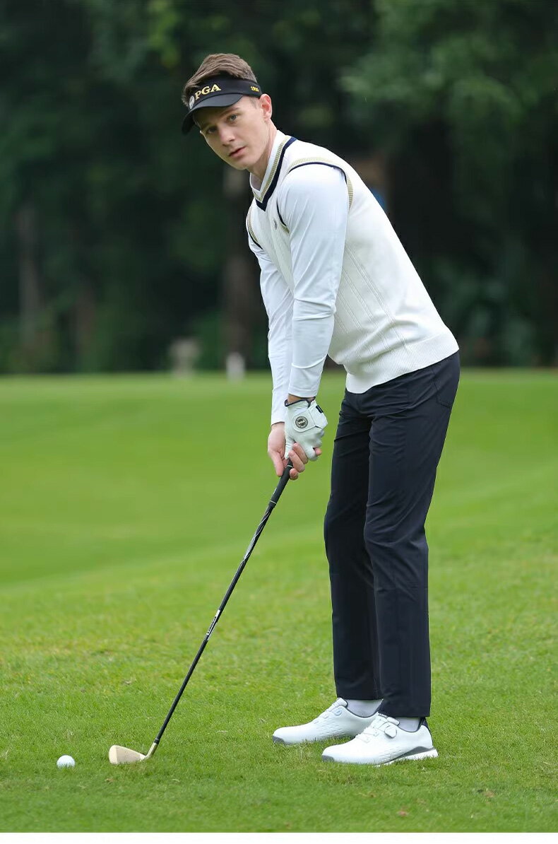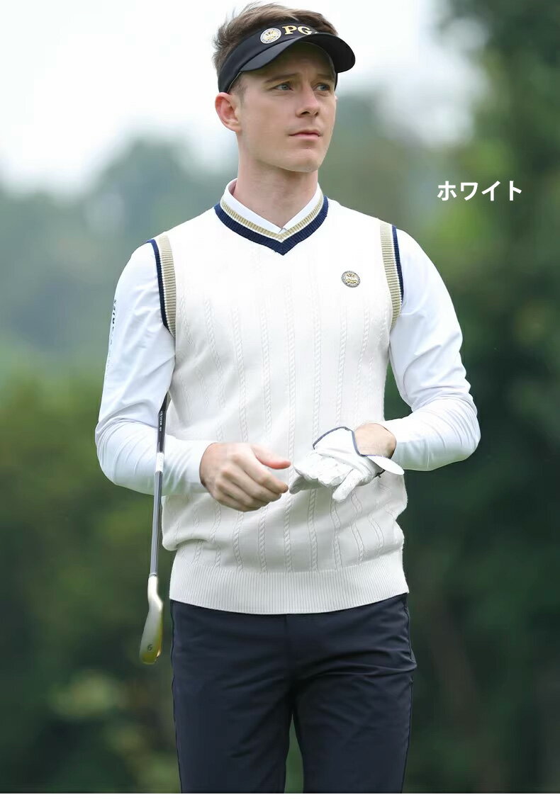 【PGA】アメリカ ゴルフウェア メンズ 男性 ベスト ノースリーブ デザイン 2色カラー 無地 Vネック 秋 冬 シルクウール 混紡 ブラウス トレーニングウェア ゴルフ 野球 スポーツウエアー オシャレ 大サイズ 白 ホワイト パープル ラベンダー ガールズ ガール 秋物 ウール