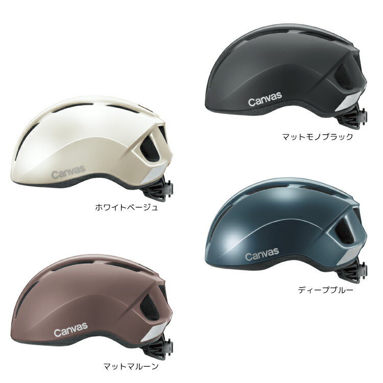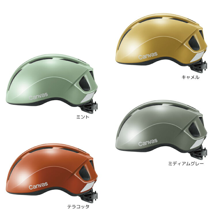 ・メーカー希望小売価格はメーカーサイトに基づいて掲載しています 2021年発売 スポーツライドに映えるニュースタイル。 新たな時代のサイクリングにマッチするニュースタイルのスポーツヘルメット。 品名 サイクリングヘルメット CANVAS Sports ( キャンバススポーツ ) 品番 CANVAS-SP カラー 2025 NEW COLOR WHITE BEIGE ( ホワイトベージュ ) MATTE MONO BLACK ( マットモノブラック ) CAMEL ( キャメル ) DEEP BLUE( ディープブルー ) MINT ( ミント ) TERRA COTTA ( テラコッタ ) MIDIUM GREY ( ミディアムグレイ ) MATTE MAROON ( マットマルーン ) 〜2024 COLOR OFF WHITE ( オフホワイト ) MATTE BLACK ( マットブラック ) GRAY ( グレー ) NAVY ( ネイビー ) OLIVE ( オリーブ ) ASH BLUE ( アッシュブルー ) WINE RED ( ワインレッド ) TURQUOISE ( ターコイズ ) FLASH YELLOW ( フラッシュイエロー ) FLASH RED ( フラッシュレッド ) 商品重量 M/L…280g ※重量はメーカー計測による参考重量のため、実際の重量と若干異なる場合があります。 規格 JCF(公財) 日本自転車競技連盟公認 標準装備品 アジャスターバンドセット-11 キャンバスインナーパッドセット アジャスターバンドセット-11用スウェットパッド サイズ M/L…57cm〜59cm ※サイズはあくまで目安です。 製品の設計により同じサイズ表示でも装着感が異なる場合があります。 ※メジャーや紐などを使い額と後頭部の一番出っ張っている部分と、耳のすぐ上を通るラインを測ってください。 ※頭の形状などには個人差がございます為、頭囲が上記サイズ内でもご使用に違和感を感じる場合もございます。 念の為実店舗などでの試着をお奨めしております。 仕様 スポーツライドに映えるニュースタイル。 新たな時代のサイクリングにマッチするニュースタイルのスポーツヘルメット。 JCF(公財)日本自転車競技連盟公認 夜間も安心の大型リフレクター 後部と左右の大型リフレクターが、夜間に車のライトを反射してドライバーへの存在をアピールします。 雨や日差しをさえぎったり、スタイリングイメージを変更できる、別売のバイザーを装着可能。 シリコンベルトタイプのテールライトが取り付けやすい形状を採用。 ※一部、取り付けできないテールライトもあります。 ※ライトは別途お買い求めください。 ※バイザー・ライトは別売りとなります。 使い勝手の良いダイヤル式アジャスター 頭部の調整をおこないやすい大径ダイヤルのアジャスター。上下3段階調整可能 ご使用上のご注意 ヘルメットの正しい装着角度で使用してください。 自転車用ヘルメットは正しい角度で装着することで、ヘルメット本来の機能を発揮することができます。ヘルメットの先端がまゆ毛のすぐ上にくるように角度を合わせ、左右均等にかぶります。額が見えるほどヘルメットの先端が上を向いていたり、ヘルメットが傾いていたりしてはいけません。アジャスター付きの場合は「必ずアジャスターを緩めてから」かぶります。 車中や暖房機など高温になる場所や直射日光に当たる場所での保管、放置はせず風通しの良い日陰で保管しましょう。 雨などで濡れたらしっかりふき取ってください。 汗で湿ったまま放置せず、洗浄してから自然乾燥した後に、保管してください。 ヘルメット自身の破壊によってケガなどの被害を軽減するパッシブセーフティによって衝撃を軽減し、落車、転倒の際に頭部を守る役目を果たしております。ヘルメットに強い衝撃が加わった際、外観に損傷がみられない場合でも、内部のライナーが損傷している可能性が高いため、そのままご使用いただくことはおやめください。 ヘルメットにも有効使用期間がございます。製品安全協会と日本安全帽工業会により、ヘルメットの有効期間を【ご購入後三年間】と定めており、その有効期間内でも強い熱を与えたり、50度以上の高温での洗浄や、改造、手荒に扱うなどの行為により、使用寿命は短くなります。適正なメンテナンスを行い、安全に使用してください。 注意事項 メーカーの製造時期ロットにより商品の仕様やカラー等が予告なく変更された際、掲載画像と異なる場合があります。 仕様変更の理由による返品交換はお受けしておりません。ご不安な場合は事前にお問合せ下さい。 代表的な車種 ロードバイク : クロスバイク : シクロクロス : ピストバイク 【 台湾 】 GIANT( ジャイアント )MERIDA( メリダ ) 【 イタリア 】 Bianchi( ビアンキ )GIOS( ジオス )Pinarello( ピナレロ ) 【 イタリア 】Ugo De Rosa & Figli ( デローザ ) 【 アメリカ 】 GT( ジーティー ) Cannondale ( キャノンデール )Dahon ( ダホン ) 【 カナダ 】 LOUISGARNEAU( ルイガノ ) Specialized( スペシャライズド )MIYATA(ミヤタサイクル) PANASONIC(パナソニック) BRIDGESTONE(ブリヂストン)ブリジストン パナ BS