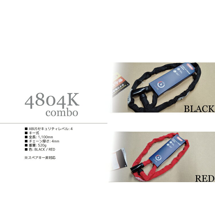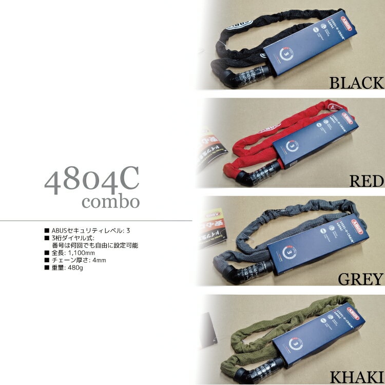 ABUS アブス 自転車 ロック チェーンロック 4804K キー式 4804C ダイヤル式 4mmチェーン 110cm 軽量 コンパクト 防犯 盗難防止 通学 通勤 ロードバイク