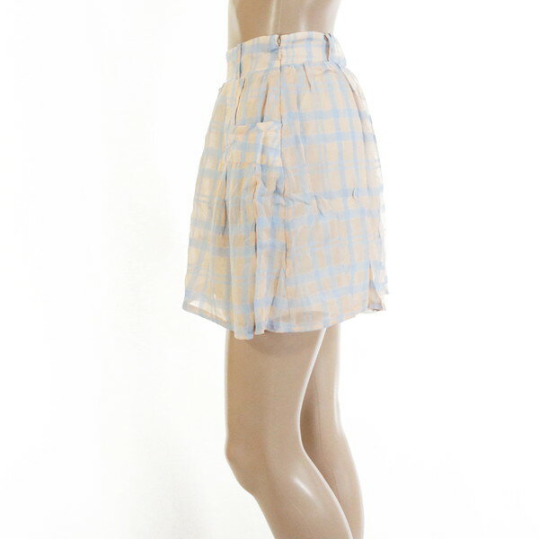 新品 ヘザー Heather キュロット M PSK6 Mサイズ ブルー ベージュ レディース キュロットスカート チェック柄 ミニ丈 フレア アウトレット