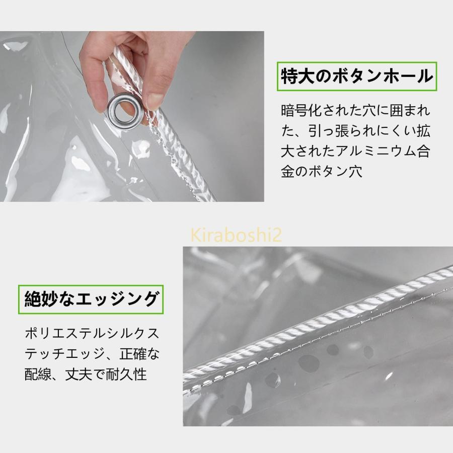 素材:透明ビニールシート厚さ0.4mm、重さ420g/m2、防水指数は100%、透明度は100%。高品質のPVC素材,強い靭性と、高い透明性 、防水、引裂き耐性、 耐寒性、耐摩耗性に 、簡単な折りたたみ、変形しにくい、清掃が簡単、 オールシーズン利用できます光透過保護:ビニールシート 防水は透明,植物の成長に必要な光合成を得るために必要な条件である冬のより高い日光率を得ることができ、透明な防水 シートを通して内部を見ることができます。防水シート 屋根は庭を雨からの保護だけでなく、保温や防霜の効能があります雨よけシート ベランダ:ベランダ カバーは,表面撥水コーティング、両面防水、排水が速く、水が溜まらないので、浸透の心配がなく、悪天候時の保護にも優れています。立体的な縁取り、ラップ角の周りの強化、耐摩耗性と耐食性、 氷点下の冬の温度や暑い夏を含むすべての耐候性のために設計されており、屋根材に最適です持ち運びが容易:ビニール 透明シート,高い柔軟性、折り畳みやすい,使用しないときは折りたたんで収納可能,省スペースでとても便利