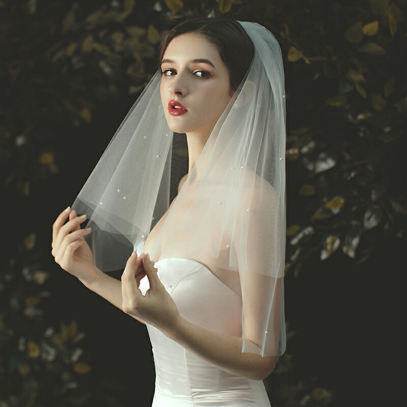 パール付きショートベール ウエディングベール、フェイスアップベール、ウエディングベール ベール ウェディング【カラー:オフホワイト】