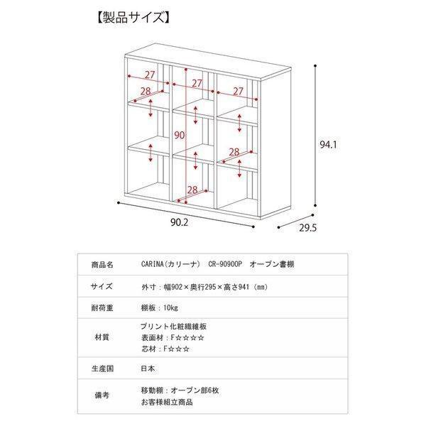 ---サイズ---外寸:幅90.2 奥行29.5 高さ94.1(cm)内寸:商品ページ内の内寸画をご参照ください。商品重量:17kg※組立家具を含む木材加工品は、組み立て方や設置環境によってサイズに誤差が生じる場合がございます。---耐荷重---天板耐荷重:10kg移動棚板耐荷重:5kg---材質---パーチクルボードプリント化粧繊維板(MDF)---備考---連結補助金具付転倒防止バンド付掲載商品の仕様・価格等はメーカーのリニューアルに伴い、予告なく変更する場合もございますので予めご了承ください。---色合いについて---実物の商品になるべく近いお色になるよう努めておりますが、 お客様のご使用のモニターやブラウザなどの環境により、 色の見え方が実物と多少異なる場合がございます。 予めご了承ください。送料無料(北海道・沖縄・離島は別途送料かかります。)玄関渡し本棚 絵本 ラック コミック収納 フレンチカントリー 小さい シェルフ ブラウン 絵本棚 木製 幅約90 日本製 CR-9090OP 新生活 組立 本棚 棚 絵本 絵本ラック 本や雑貨をスッキリ 収納 オープン本棚 書棚 CR-9090OP 絵本ラック DIY 木製 日本製 新生活