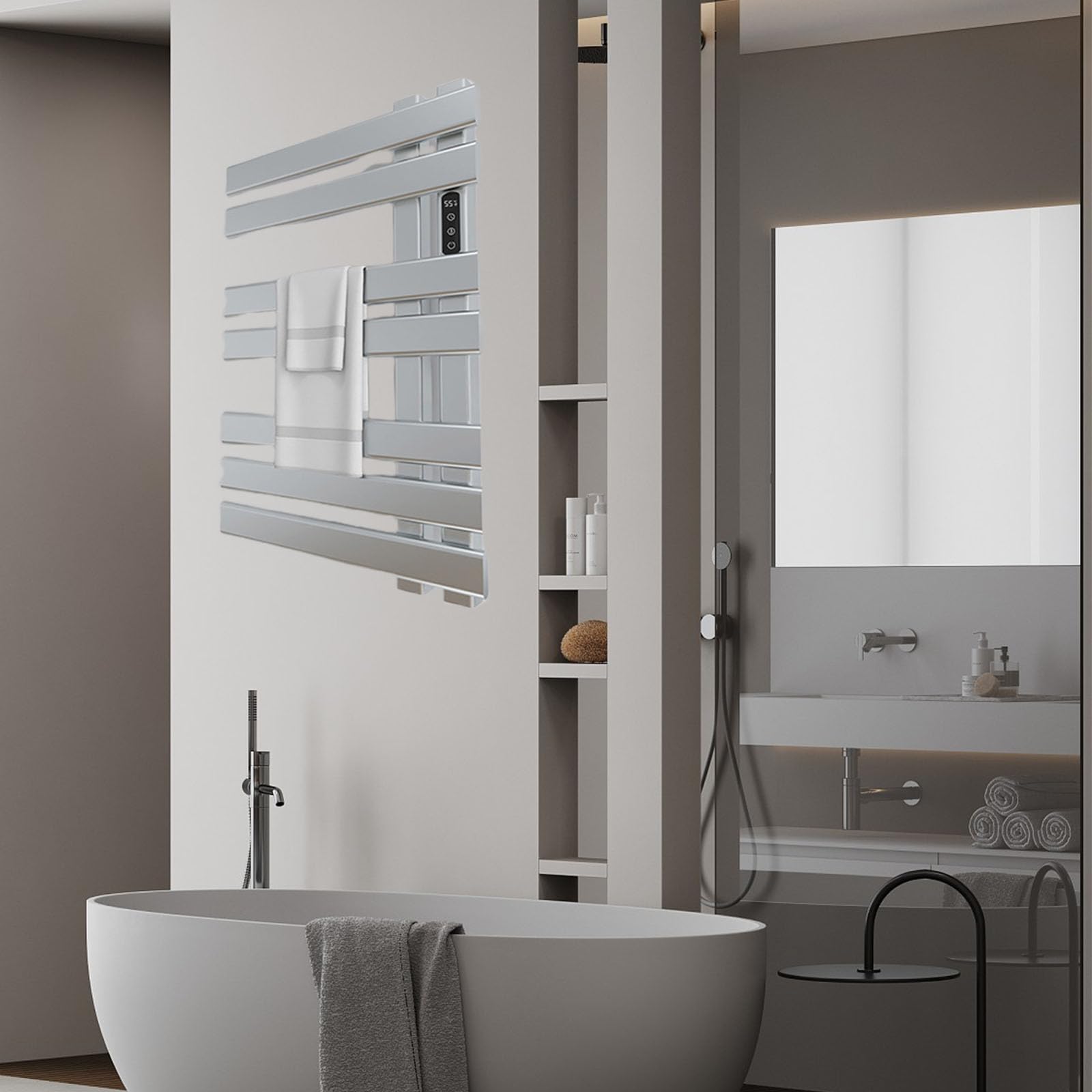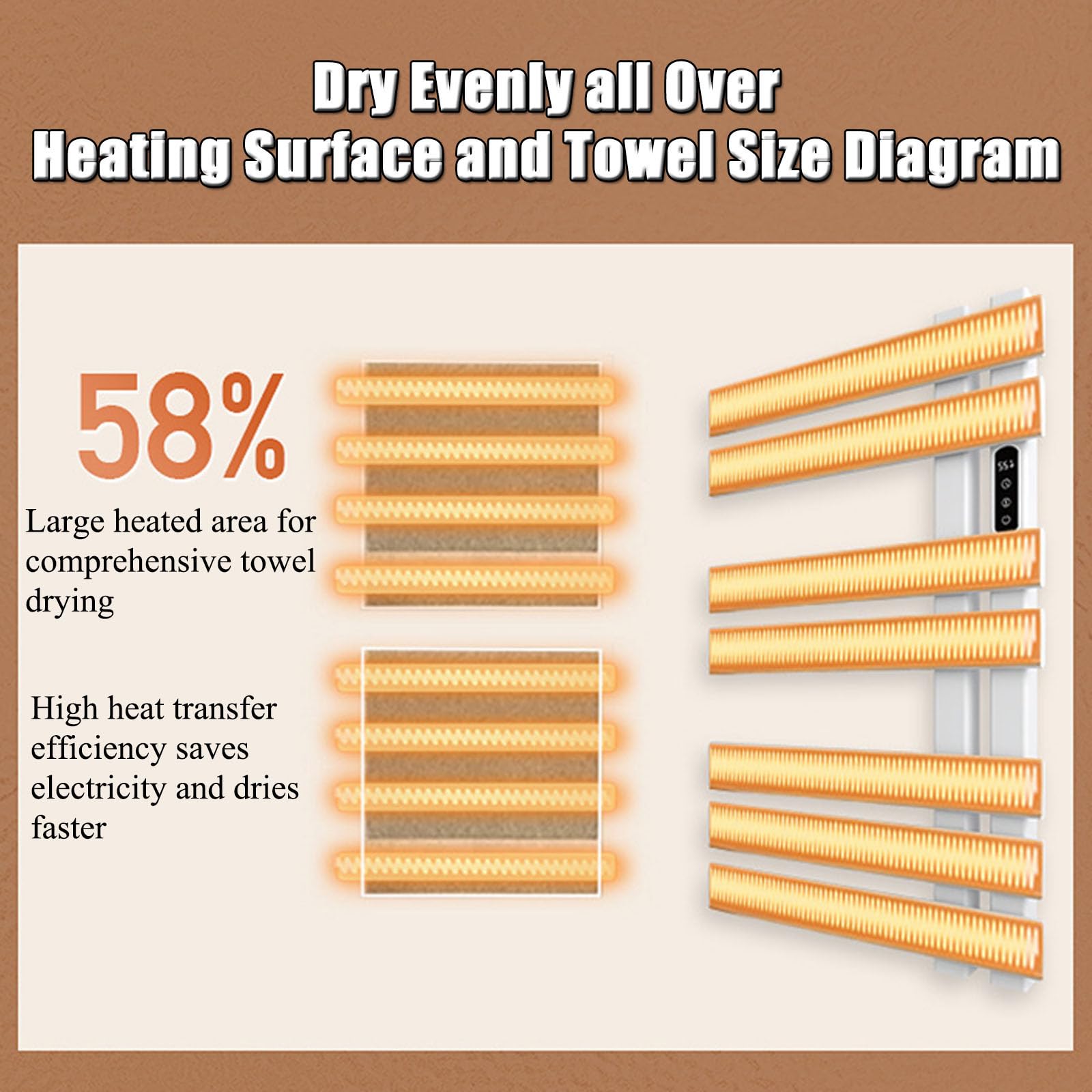 電動タオルウォーマー、壁掛け加熱タオル掛けタイマー内蔵付き、バスルームラジエータータオルレール 温度調整付き