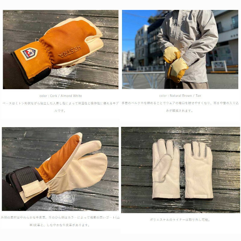 ヘストラ グローブ HESTRA 33872 TOPO 3-Finger Full Leather Short 3フィンガー フルレザー ショート丈 スキー グローブ 本革 取り外し ライナー