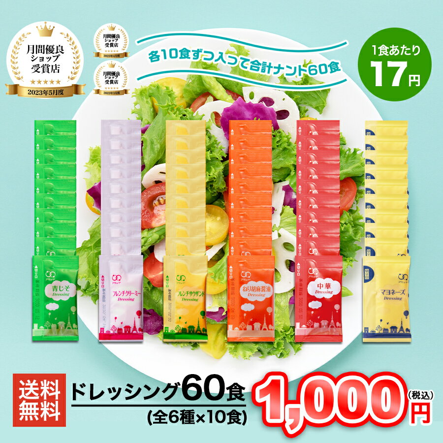 【NEW】[アミュード公式] ドレッシング 6種セット全60食 小袋 小分け サラダ 青じそ ドレッシング 中華 ドレッシング フレンチクリーミー フレンチサウザンド ねり胡麻醤油ドレッシング マヨネーズ ギフト お弁当 業務用 運動会 体育祭 梅雨 夏休み お土産 ストック