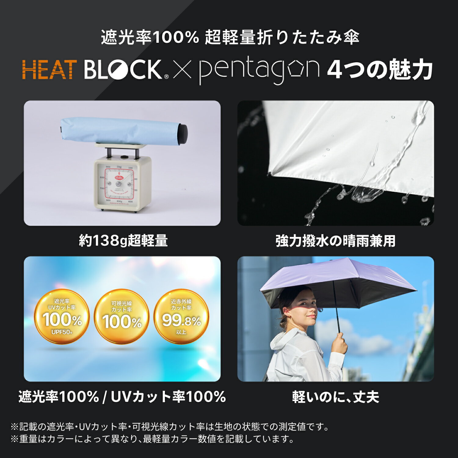 晴雨兼用 遮光100 【 AMVEL 公式】 pentagon 世界最軽量級 折りたたみ 日傘 HEATBLOCK レディース メンズ ユニセックス UVカット 遮光 100 超軽量 軽量 丈夫 風に強い 耐風 コンパクト スリム 撥水 遮熱 涼しい ヒートブロック ペンタゴン ホワイト アンベル 傘 折り畳み