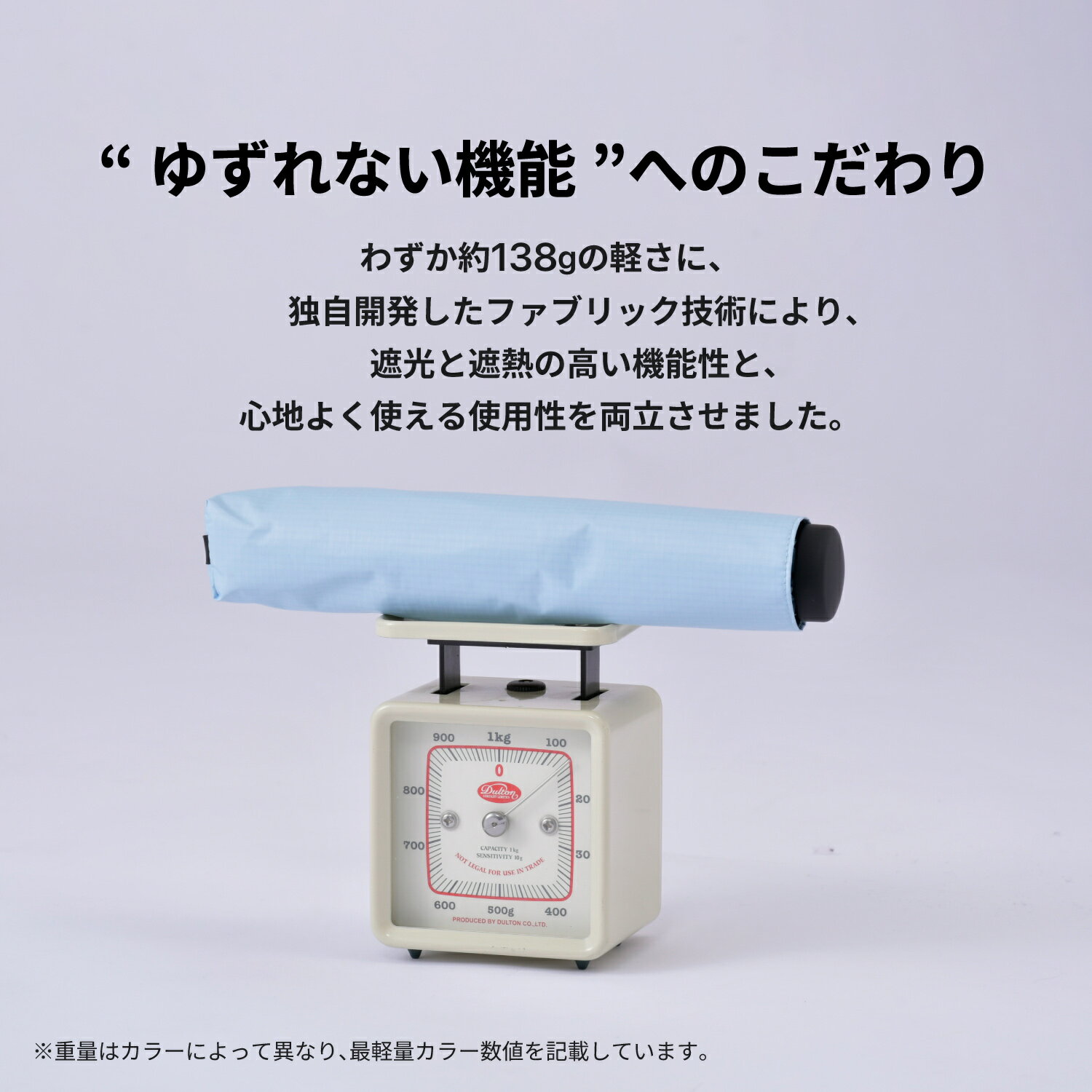 ブランド pentagon / ペンタゴン HEATBLOCK / ヒートブロック 商品名 HEATBLOCK pentagon ヒートブロック ペンタゴン 商品説明 遮光率100%を搭載した、世界最軽量級の折りたたみ傘 pentagon(ペンタゴン) pentagon(ペンタゴン)シリーズより、遮光率100%の折りたたみ日傘が登場。 携帯性に優れた超軽量タイプと日傘の相性は抜群です。 “ゆずれない機能”へのこだわりと、圧倒的な持ち運びやすさ わずか約138gの軽さでありながら、独自開発したファブリック技術により、 遮光と遮熱の高い機能性と、心地よく使える使用性を両立させました。 軽さ、そしてコンパクトかつスリムなデザインが、紫外線や暑さに適した傘の「持ち運びやすさ」を実現します。 ※重量はカラーによって異なります。 遮光率100%、UVカット率100%、可視光線カット率100%、UPF50+ 独自開発生地のHEATBLOCK®(ヒートブロック)により、強力な太陽光がふりそそぐ夏場にも安心の日傘です。 トリプルブロック構造が近赤外線をカットし、熱をさえぎる遮熱率は55%(カラー最大値)。暑さ対策も抜群で涼しい体験を。 ※遮光率・UVカット率・可視光線カット率は生地の状態での測定値です。遮熱率はカラーによって異なります 照り返しを防ぐために、内側のカラーは黒色で統一(アンチリフレクション機能) 日傘の内側が明るい色の場合、地面からの照り返しで、太陽光を反射してしまいます。 HEATBLOCK®(ヒートブロック)では、内側の色を黒色で統一し、反射光を吸収する仕様にしています。(アンチリフレクション機能) 強力撥水Easy-Dry加工で、晴雨兼用(Sun & Rain & Wind 全天候対応タイプ) 強力な撥水効果が持続するEasy-Dry加工が施されています。 雨に濡れた後は、傘を2〜3回軽く振るだけで、水滴のほとんどが落とせます。 雨の日も夏の晴れの日も、晴雨兼用傘として一年を通じてご利用いただけます。 スリムなデザインで、風に強いカーボンを使用 軽くて丈夫なカーボンファイバーフレーム(骨構造)により、軽量でも風速15m/sに耐える強さを実現しています。 ユニセックスで使用できる。豊富なカラーバリエーション ユニセックスで選べる豊富なカラーバリエーションを取り揃えています。 レディースアイテムとしてだけでなく、メンズ日傘や、男性へのギフトとしてもおすすめです。 たたみやすく、軽くて丈夫な、20デニールの傘生地 傘生地には20デニール極細糸を採用しています。 極細糸を使用することで、一般的な傘生地と比べて50%以上の軽量化を実現しました。 高密度生地が、日差しや雨をしっかり防ぐほか、たたみやすさをお届けします。 【AMVEL / アンベル】 AMVEL(アンベル)は革新的な機能を追求し続ける日本の折りたたみ傘ブランドです。 すぐに壊れない丈夫さと、使い続けられる上質でシンプルなデザイン。 バッグに常備できる軽さやコンパクトさ。 時代によって変化するベストを追求し、最先端の技術を駆使した傘をお届けします。 サイズ 重量 ・Ash Lavender(アッシュ ラベンダー)138g ・Water Blue(ウォーターブルー)143g ・Sand White(サンドホワイト)147g ・Taupe(トープ)119g 骨数 5本 親骨 50cm 【使用時】 直径(横) 82 cm 全長(縦) 50 cm 【収納時】 横幅(横) 5cm 高さ(縦) 22cm 素材 ポリエステル 原産国 中国 ご注意事項 ○モニターの発色の具合によって実際のものと色が異なる場合がございます。 ○ご使用になる前に製品に付属しているご使用上の注意をお読みください。 ○記載の遮光率・UVカット率・可視光線カット率は生地の状態での測定値です。 ○外観仕様等は、改善のため予告なく変更する事があります。 楽天 折り畳み 折り畳み傘 雨 雨用 雨天 雨傘 軽量折りたたみ傘 軽量折り畳み傘 折りたたみ雨傘 折り畳み雨傘 折りたたみ傘軽量 軽量傘 折りたたみがさ おりたたみがさ 丈夫な折りたたみ 折り傘 ブランド 高機能 画期的 超軽量 超軽量折りたたみ傘 撥水 強力撥水 強力はっすい 強力はっ水 超はっすい 超はっ水 はっ水 はっすい 超撥水 撥水持続 ナノテク ナノテク撥水 おしゃれ オシャレ お洒落 かわいい 可愛い かっこいい 社会人 学生 高校生 女子高生 大学生 卒業 入学 引っ越し 大人 通勤 通学 旅行 紳士 婦人 男性用 女性用 折り畳み 傘 シンプル グラスファイバー カーボン 梅雨 超軽量折りたたみ傘 軽量丈夫 コンパクト コンパクト折りたたみ傘 小さい ちいさい ちっちゃい ミニ ミニサイズ ミニ折り畳み傘 強い サステナブル 人気 人気の おすすめ オススメ ランキング あんべる たたみやすい 畳みやすい 軽くて丈夫 ジャンプ プッシュ式 ワンタッチ折りたたみ傘 ワンタッチ傘 プレゼント アウトドア 登山 トレッキング バックパック リュック 耐風 強風 母の日 父の日 誕生日 クリスマス バレンタインデー ホワイトデー お祝い 贈り物 お礼 持ち運び 携帯サイズ 20代 30代 40代 50代 60代 壊れにくい かばん バッグ カバン ひっくり返らない 小さい ちっちゃい 50cm 晴雨兼用 雨晴兼用 晴雨兼用折りたたみ傘 雨傘 遮光傘 折り畳み遮光傘 遮光率 兼用 晴れ はれあめけんよう 晴れ雨兼用