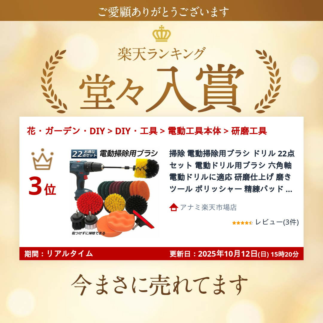 【oneセット内容】12*異なる剛性の洗浄パッド2*スクラブスポンジ6*中型ドリルパワースクラバーブラシ1*インチ六角メタルシャフト1*エクステンションロッド【掃除が楽々】高速回転ブラシなので、頑固な汚れを効果的に落とします。玄関マットやタイヤの隙間に挟んだ汚れにも取り除けます、操作に快速で便利になり、手間も節約できて、車掃除の不可欠品です。中等硬度のナイロンを作られた浴室掃除用ブラシは耐久性強い、使用寿命は長。また、中等質材ので、お風呂などの掃除は傷ができません、ご安心使用ください。【耐久性】中等硬度のナイロンを作られた浴室掃除用ブラシは耐久性強い、使用寿命は長。また、中等質材ので、お風呂などの掃除は傷ができません、ご安心使用ください。【4異なる剛性精練パッド】これらのワックスがけバッファーパッドは、使いやすく、洗浄も簡単です。すべてのカラーポリッシュパッドには異なる柔らかさの特性があり、粗い、中程度、細かい研磨に最適です。【注意】本製品にはドリルが付属しておりません。