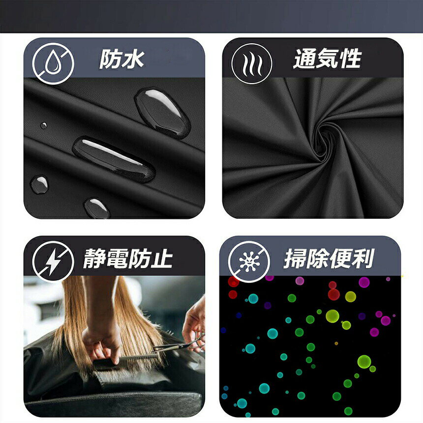 ・軽くて通気性のよい、肌に密着しないシワ加工素材を使用しています!・撥水&防汚加工!・生地にしわ加工をかけてあるので、毛落ちも良好です。・前/後身ごろ共にゆったりワイドサイズヘアカットクロスです。・首のマジックテープで、大きな椅子でも背中割れをおこしません。・サイズ:145cm*180cm、首周り約35〜54cmまで対応可能・留め部:マジックテープ(首で留める)・カラー:ブラック、ホワイト、グレー・素材:ナイロン・加工:撥水/防汚加工・タグ:有※輸入品のため、多少の汚れ、しわ、ほつれ、縫い目とびなどがございます。使用には問題ございません。ご購入の際は予めご了承下さいませ。
