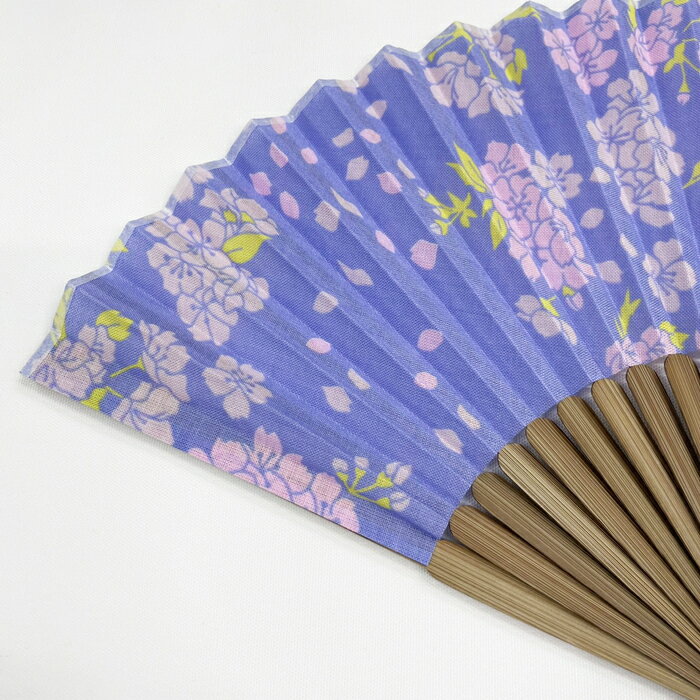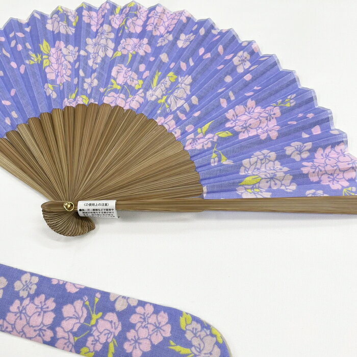 手ぬぐい扇子「桜吹雪 楝色」布製/ケース付き/ギフト/飛沫防止/花柄/サクラ/紫