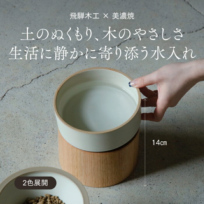 商品名TAJIMI / water bowlサイズ皿の直径約14.5cm×皿の深さ約4.5cm×高さ約14cm重量約1,300gカラーホワイト、ブラック素材磁器(美濃焼)、クルミ無垢材製造日本こだわり【猫用品を、もっと美しく。インテリアに馴染み、暮らしに溶け込むものをつくりたい】そんな想いから生まれたのが、TAJIMI / water bowlです。どこに置いても様になるシンプルなデザイン。でも、それだけではありません。猫にとっての快適さ、飼い主にとっての使いやすさ、そして、職人のこだわりがすべて詰まった一品です。【猫のために、本当にいいものを】「猫が水を飲まない」「器を倒してしまう」「おしゃれなものが見つからない」そんな悩みを解決したい。そこで、獣医師の監修のもと、猫にとって理想的な設計を追求しました。◎ 高さ約14cmで、猫が首や関節に負担をかけずに自然な姿勢で飲める◎ひげストレスを軽減する、広めの飲み口◎ 重さ約1,300gで安定感抜群。倒れにくく、掃除ロボットにも負けない◎ 電子レンジ&食洗機対応で、日々のお手入れも簡単獣医師からも、こんな言葉をいただきました。「猫は低すぎる器では飲みづらく、結果的に水をあまり摂取しなくなることも。HM BOWLは、獣医学的にも理想の高さを実現し、快適に水を飲める設計です。」【職人の手が生み出す、唯一無二のフォルム】「どこに置いても様になる、猫のための器をつくりたい。」その想いに応えたのが、飛騨高山の木工職人と美濃焼の陶芸家でした。『飛騨木工の職人が手掛ける、無垢材の台座』「ウォーターボウルの台座は、木の温もりを感じられるものに。」そう決めたものの、理想の木材を見つけるのは簡単ではありませんでした。試行錯誤の末、たどり着いたのは秋田県産のオニグルミ。職人曰く、「木目が美しく、使うほどに風合いが増す。猫の成長とともに、木の表情も変化するのを楽しんでほしい。」一度板状にしてから組み立て、丁寧に削り出す。見えない部分にも、職人の技が込められています。【美濃焼ならではの、繊細な釉薬の表情】美濃焼の器は、1300年以上の歴史を持つ伝統工芸品。その風合いは、ひとつとして同じものがありません。「釉薬のかかり方ひとつで、表情が変わる。手仕事ならではの味わいを楽しんでいただきたい。」その言葉通り、ひとつひとつ異なる個性を持つ、美しい器が生まれました。キーワードウォーターボウル 猫 ネコ ねこ 猫用品 長持ち 安心素材 日本製 美濃焼 おすすめ おしゃれ インテリア 北欧デザイン シンプル スタイリッシュ モダン 大きな猫 大型猫 ウォータースタンド ウォーターボウルスタンド 高台 猫食器 猫用食器 猫の食器 犬食器 犬用食器 ペット食器 えさ皿 餌皿 餌台 食器台 餌入れ 水入れ えさ入れ ご飯皿 ごはん皿 猫皿ペットボウル ペットボール フードボールスタンド 猫のえさ皿 猫えさ皿 猫用 食器 えさ台 エサ台 さら 高い こぼれ防止 ハイタイプ ハイスタンド 浅型 浅い 体によい 小型犬 シニア 老犬 高齢犬 老猫 高齢猫 トイプードル チワワ フレンチブルドッグ 関連商品はこちら猫 ベッド おしゃれ 丸型 洗える 軽量 ...【楽天限定アウトレット】猫 フードボウ...