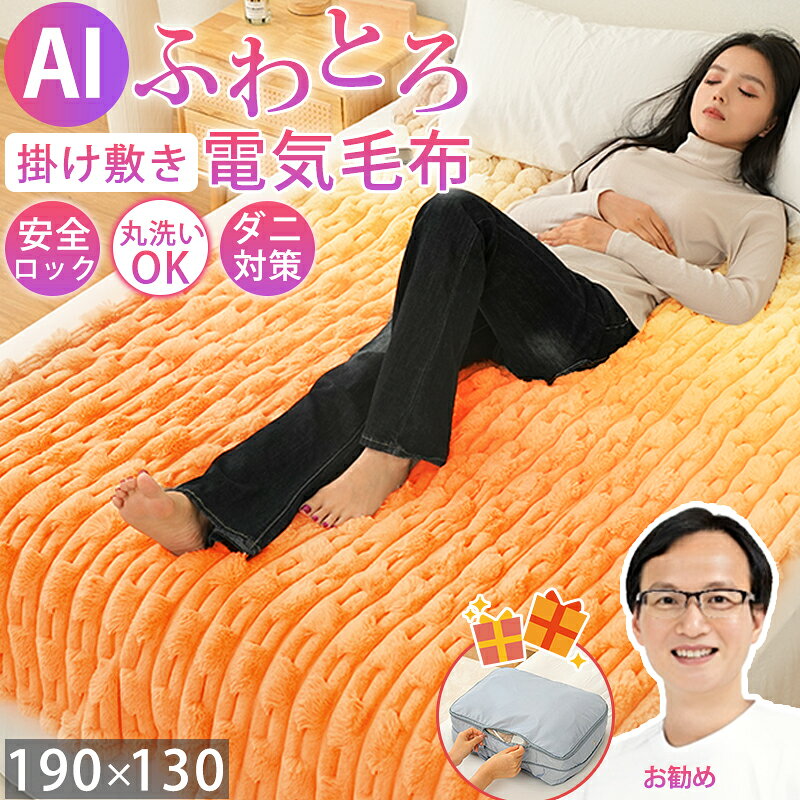 【AI調温|チャイルドロック|BF限定最安8,900円】楽天1位 電気毛布 掛け敷き 190×130cm ふわふわ 洗える 電磁波カット ブランケット タイマー付き 6段階温度 抗菌防臭 ダニ退治 自動電源オフ 電気ひざ掛け 肩掛け 膝掛け 毛布 電気ブランケット 厚手 ふわとろ毛布