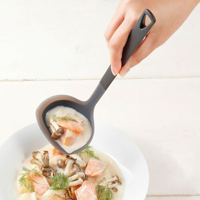 手になじみ、心地のよく使えるの“トライアングリップ”キッチンツールシリーズ。 シリコン素材だから、お鍋にフィットして残さず掬えるシリコーンお玉。 角のある先端形状で左右どちら側からも注ぎやすくなっています。 ●北海道・沖縄・離島は追加送料がかかります。注文確認後、送料修正しご案内いたします。marna / マーナ トライアングリップシリコーンお玉 日々の家事で欠かせない調理を、効率よくサポートしてくれる便利なキッチンツールの登場です。 シリコン素材でできたこのお玉は、熱に強く、ほどよく柔らかいのでお鍋にフィットし、カレーやシチューを残さずきれいに掬いとることができます。 先端が平たく角丸になっているのは、お味噌汁やスープなどを器に注ぐ時に角に沿うように流れていくのでこぼれにくい仕組みに。 トライアングリップシリーズのキッチンツールは、握ることを追求した「三角断面」グリップで、手にフィットしてくれるから、調理中にストレスを感じることなく快適にお使いいただけます。 カレーやシチューには欠かせないお玉。シリコン素材特有のしなやかさとマーナ独自の形状で、鍋につきやすいルーをスクレーバーのようにきれいに掬いとってくれます。 きれいに取れると最後の食器洗いが楽になり、家事の軽減にもつながりそうですね。 すくう、そそぐだけでなく、先端が平たくなっているからチャーハンなどの炒め物にも使えるマルチなキッチンツールです。 お玉に角をつけることで、注ぎやすさをプラスしてくれました。左右どちらにも角がついているから、右利きさんにも左利きさんにもお使いいただけます。 毎日使うものだからこそ、持ち手にはこだわってほしい。マーナのトライアングリップシリーズは、握ることを追求した「三角断面」グリップを採用し、握った時に心地よく手にフィットしてくれるから、調理中に痛くなったり、握りにくくストレスを感じることなく快適にお使いいただけます。 シリコーンお玉シリコーンお玉 S シリコーンヘラ シリコーン調理スプーンシリコーン調理スプーン S シリコーンターナー ●商品の詳細● 品 名 マーナ トライアングリップ シリコーンお玉 サイズ 約 87 × 70 × 274 mm 材 質 ナイロン・シリコーンゴム 耐 熱 約 200℃ カラー イエロー / ブラック 入 数 1個 備 考 食器洗い乾燥機可、電子レンジ不可 ■注意点 ※耐熱温度は守ってご使用ください。 ※樹脂の性質上、食品(カレーやミートソース等)により変色することがございますが、ご使用には差しつかえありません。 ※鍋・フライパン等に入れたままでのご使用はおやめください。 ※商品の色は、画面上の画像と実物とでは多少異なる場合があります。色・イメージが違う等の理由による返品は一切お受けできません。予めご了承下さい。 ▼ キッチンツールならこちらもオススメ ▼ タワー シリコーンスプーン タワー シリコーン菜箸 タワー シリコーン調理スプーン