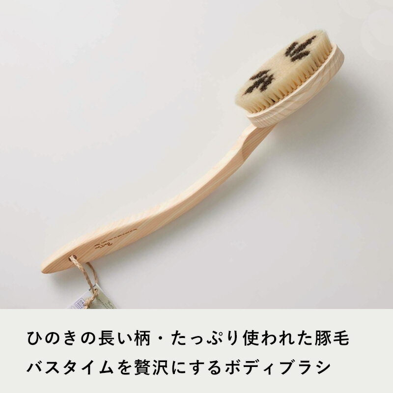 【レビュー特典】 〔 マーナ Bathボディブラシ曲柄 (豚毛) 〕 高級 バスボディブラシ ボディーブラシ 檜 ヒノキ 木製 持ち手 国産 マッサージ 長柄 カーブ 豚毛 天然毛 バス用品 お風呂 浴室 硬め 角質 ケア シンプル おしゃれ B573 marna ギフト プレゼント