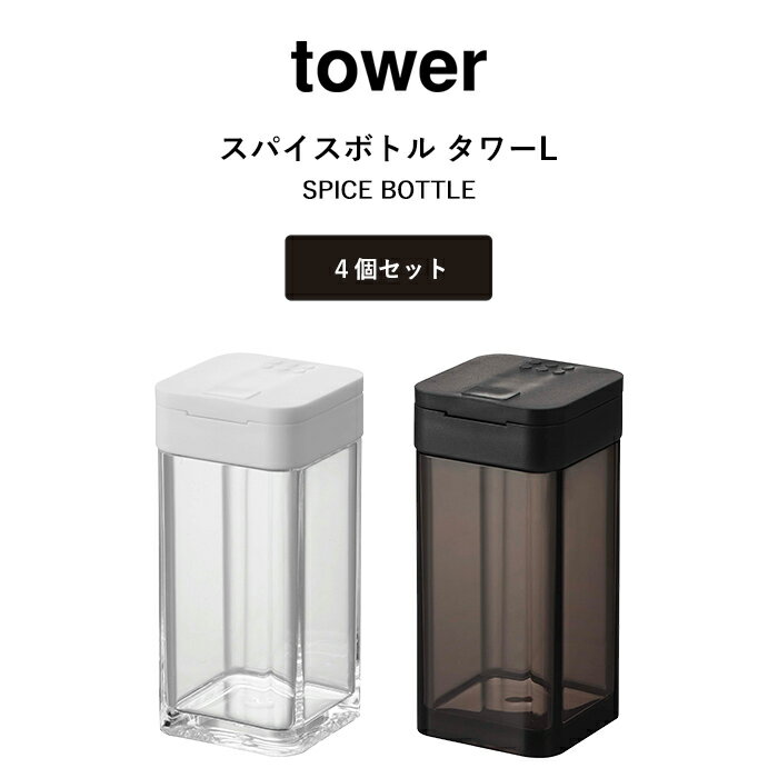 【レビュー特典】 スパイスボトル 〔 山崎実業 スパイスボトル タワー L 4個セット 〕 tower 調味料入れ 調味料ボトル 調味料 スパイス キャニスター 保存容器 おしゃれ シンプル キッチン キッチン収納 四角 5825 5826 公式 ホワイト ブラック 白 黒 YAMAZAKI