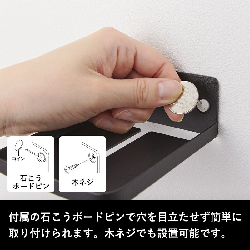 置き場に悩む見守りカメラを壁面に簡単設置。 石こうボードピンでお好きな位置に取り付けられて大切なご家族やペットを見やすい位置でしっかり見守ることができます。 ●北海道・沖縄・離島は追加送料がかかります。注文確認後、送料修正しご案内いたします。 この商品はラッピング可能です。(+110円)ご希望の方は[ラッピングする]を選択のうえ、ご注文ください。 JAN:4903208040884smart ウォール見守りカメララックスマート石こうボード壁対応 置き場に悩む見守りカメラをラックに乗せて壁面に簡単設置。 石こうボードピンでお好きな位置に取り付けられて大切なご家族やペットを見やすい位置でしっかり見守ることができます。 底面にネジ穴のある見守りカメラは付属のネジで固定して落下対策も。 コードは後ろのスリットから通すことができるので配線もスッキリさせられます。 ※見守りカメラは付属しておりません。 置き場に悩む見守りカメラを壁面に取り付け。 取り付け可能な壁面ならカメラを置く位置を自由に選ぶことができます。 壁面に置くことによって部屋全体を見渡しやすく、普段の生活の妨げになりません。 設置方法は壁の穴が目立ちにくい「石こうボードピン」と「木ネジ」の2種類。 取り付けたい壁面に合わせてお使いください。 ※木ネジをご使用の場合、プラスドライバーをご用意ください。 お子様やペットの手の届かない場所に設置可能なので、いたずらなどで転倒するのを防ぐこともできます。 見守りカメラはラックに置くだけで使用できますが、底面にネジ穴があるタイプだと付属のネジを使って 固定することも可能です。 落下防止にもなりより安全にお使いいただけます。 ※見守りカメラによってはネジ穴がないタイプもありますので事前にご確認ください。 ケーブルは後ろのスリットに通すことで見た目もスッキリ。 スリットの幅が広いのでカメラの角度や配線の位置を気にせず付けることができます。 お家のネットワーク環境を整える収納 ウォールホームルーターラック タワー 石こうボード壁対応 ウォール隠せるルーター収納 タワー Sサイズ/Lサイズ 石こうボード壁対応 重ねられるスリム蓋付きルーター収納ケース スマート ⇒ 商品カテゴリー>収納雑貨 ⇒ 人気のキッズ食器「tak.」 ⇒ 子供やペットのいたずら防止にコンセントガード [ NEW ]大人気のtowerなど山崎実業の最新アイテムはこちら ●商品の詳細● 品 名 smart ウォール見守りカメララック スマート 石こうボード壁対応 サイズ 約 幅9 × 奥行き11.5 × 高さ4cm(内寸:約 幅8.7 × 奥行き11.1cm) 耐荷重 約 1kg 材 質 スチール(粉体塗装) 重 量 約 200g カラー ホワイト/ブラック 付属品 石こうボードピンセット×2(取り付けピース×2、クギ×6、キャップ×2)木ネジ×2 見守りカメラ固定具セット(六角ネジ、ワッシャー、六角レンチ) 入 数 1個 備 考 <取り付け可能な壁面> ○石こうボードピン 壁紙・布壁紙・ビニール壁紙貼りなどの石こうボード・薄ベニヤ ※石こうクギは石こうボード9.5mm以上、薄ベニヤ5mm以上に適します。 ○木ネジ 柱・板壁(厚さ1cm以上)・プリント合板(裏面に水平にサンがある場所)・裏側に下地材(間柱)が入っている壁 ※壁の厚みはベニヤ板で1cm以上必要です。 ■注意点 ※ご使用予定の場所が取り付け可能な壁面かご確認ください。取り付けできないなどの理由による返品交換のお受付は致しかねます。予めご了承ください。 ※ドライバーは付属しておりません。木ネジでの取り付けをお考えの場合にはプラスドライバーをご用意ください。 ※耐荷重以上の物は絶対に収納しないでください。 ※耐荷重制限内でも、大きな衝撃により製品が落下し、ケガや破損の原因になることがありますのでご注意ください。 ※洗濯機やドアの近く等、壁が振動する場所には取り付けないでください。製品が落下し、ケガや破損の原因になります。 ※本製品を高い位置に設置する場合は、万一の落下に備え落下しても体に当たらない安全な場所に取り付けてください。 ※小さなお子様やペットの手が届かない場所でご使用ください。思わぬ行動により落下しケガをする恐れがあります。 ※製品は屋内でご使用ください。屋外でのご使用は変色や錆の原因となりますのでお避けください。 ※サイズや形状によっては設置できない物もあります。 ※商品の色は、画像と実物とでは多少異なる場合がございます。色・イメージが違う等の理由による返品は一切お受けできません。予めご了承下さい。