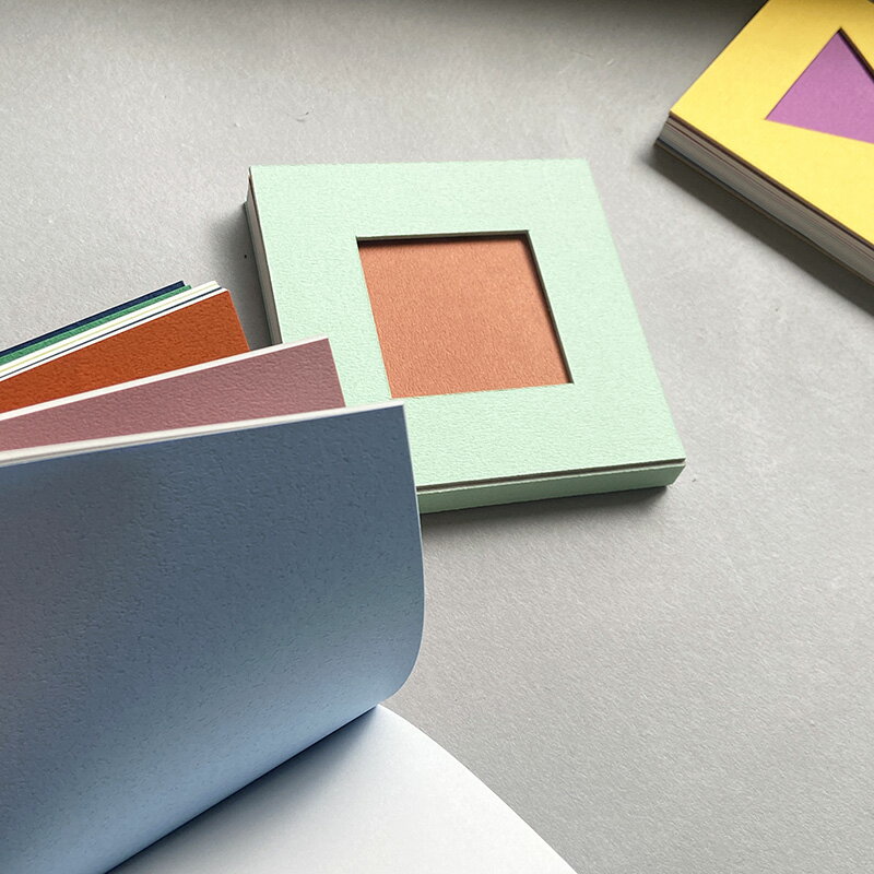端材から生まれたグラフィカルな見た目が楽しいメモパッド。 衣服やアクセサリーを身に纏うように、毎日持ち歩きたくなるステーショナリーです。 10ページ毎にランダムに選んだ色紙が入っており、使っていくことで表紙窓から見える色がどんどん変わっていくため配色の変化が楽しめます。 Size:100mm×100mm 《ページ構成》 ■通常 白無地(100P) , 色無地(10P) ※すべて1点ずつ手作業にて制作していますので、寸法が少々変わる事がございます。予めご了承頂けますようお願い申し上げます。 ※環境により、実際の商品と掲載画像とでは色等の見え方が異なる場合がございます。予めご了承くださいませ。