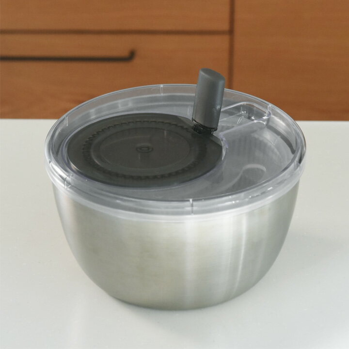【ご希望の商品が売り切れの場合】「お問い合せ」リンクより、ご希望の「サイズ」「カラー」をご記入の上、「お知らせメール希望!」と送信してください。(取扱い終了などの場合もございます。)日本製 サラダスピナー ステンレス 野菜 水切り ボウル 下ごしらえ 便利グッズ キッチン サビ汚れに強い 手動 食洗機可 食器乾燥機可/ステンレスサラダスピナー/365methods【送料無料】商品詳細そのままテーブルに並べても絵になるステンレス製のサラダスピナー。水切りとしての役割にとどまらず、簡単な調理ができるのも魅力。下準備用に使ったり、あらゆる場面で活躍します。SPECsize:収納時(ツマミを倒した状態)/直径21×高さ12.2cm使用時(ツマミを立てた状態)/直径21×高さ16.5cmボウルのみ/径20.5×高さ10.8cmザルのみ/径19.3×高さ9.3cmフタのみ/径21×高さ2.7cm重さ:約684g(ボウルのみ:326g、ザルのみ:98g、フタのみ:260g)満水容量:約 3.0L(ボウル)素材:フタ/AS樹脂(耐熱温度:80℃)中ふた・ツマミ/ABS樹脂(耐熱温度:80℃)ツマミ軸/MS樹脂(耐熱温度:80℃)回転部・ザル/ポリプロピレン(抗菌剤配合、耐熱温度:90℃)ツマミカバー/熱可塑性エラストマー(耐熱温度:90℃)ボウル/18-8 ステンレス鋼原産国/製造国 :日本(ステンレスボウルは韓国製)知っておいて頂きたいこと◇送料無料※商品写真は撮影条件により、実際のカラーと異なる場合がございます。実物に近いカラーに関しては、カラーバリエーション枠(カート横の商品画像)をご確認ください。※食器洗い乾燥機使用可(ステンレスボウルのみ)※ボウル・ザルは、それぞれ単体で使用することもできます。日本製 サラダスピナー ステンレス 野菜 水切り ボウル 下ごしらえ 便利グッズ キッチン サビ汚れに強い 手動 食洗機可 食器乾燥機可/ステンレスサラダスピナー/365methods【送料無料】サラダ作りをもっと身近に出しっぱなしも美しいスピナーできることなら毎日食べたい生野菜。そのハードルをぐーん!と下げるステンレス製の「サラダスピナー」が登場しました。洗練されたボウルかと思いきや、そのままテーブルに並べても絵になる「サラダスピナー」。水切りとしての役目にとどまらず、簡単な調理ができるのもステンレス製の魅力。水切りをしたら、オイルやドレッシングを和えてそのままサーブしたり、冷蔵庫で冷やせば野菜もシャキシャキに。さらにボウルとして下準備用に使ったり、あらゆる場面で活躍してくれるアイテムです。野菜クルクルでシャキッと瑞々しく生野菜を美味しく食べるのにかかせないサラダスピナー。洗った野菜をいれて、クルクル回せば面白いように水切りが。いつでもみずみずしくて美味しい野菜が食べれます。サラダスピナーといえば一般的にプラスチックタイプが多いですが、こちらはステンレス製。丈夫でサビに強い機能性もありながら、スタイリッシュな佇まいでキッチンを飾ります。※水切りの目安:おおよそレタス半玉分が使用の目安。時おり状態を確認しながら15〜30秒ほどグルグルしていただくと余分な水分を飛ばし、程よく水分を残してくれます。機能&デザインを両立したステンレス製ボウル部分はサビや汚れに強く耐久性が高いステンレスを採用。冷蔵庫で冷えるのも早く、水切り後に冷蔵庫で冷やせば葉物野菜もシャキシャキに。ニオイ移りの心配も少なく油落ちが良いのもステンレスならでは。サラダをドレッシングと和えたり、冷製パスタのように最後にソースを加えて仕上げるお料理との相性の良さも抜群です。ステンレスならではのマットな艶感がほんのり高級感もあり、テーブルに並べても映えるデザインです。アイディアがぐーんと広がる3点SETアイデア次第で使い方が広がる「ステンレスボウル+樹脂製ザル+樹脂製フタ」の3点セット。サラダスピナーとしてはもちろん、野菜の一時置きや麺の湯切り、ホットケーキの下準備など様々な調理シーンで活躍してくれます。隅々まで洗えて、毎日清潔にフタは、持ち手つきの回転部分・フタ・中フタの3つに分解できて、手が届きにくい部分もすみずみまで洗えます。見えない部分のカビを気にすることなく、清潔な状態をキープできます。<回転部分の取り外し方>ハンドルを立てた際にできる溝から、ギアのグレーの部分に指をかけてもらい、上に引っ張ると外れます。<フタと中フタの取り外し方>フタと中フタの隙間に指を入れて引っ張ると外れます。※固くなっている場合がございます。力加減を調整しながらグッと力を入れて引っ張ってください。食洗機OK、使いやすいポイント取っ手をしまえて収納力◎しまう時は、フタのくぼみに取っ手をはめてフルフラットに。つまみを倒した状態で高さは12.2cm、引き出しへも収納しやすい仕様です。食洗機OKでお手入れ簡単ステンレスボウルは、食器洗い乾燥機OK。お手入れもラクチンなのが毎日使いに嬉しいポイントです。日本で組み立て安心品質日本で組み立てを行っており、品質も安心。(ステンレスボウル単体は韓国製になります。)日々のコ