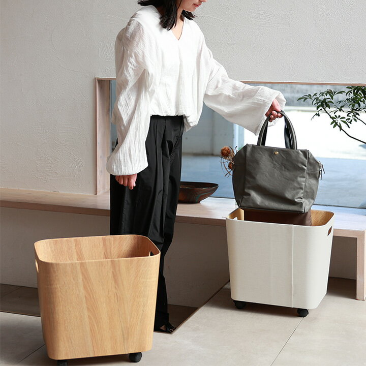 【ご希望の商品が売り切れの場合】「お問い合せ」リンクより、ご希望の「サイズ」「カラー」をご記入の上、「お知らせメール希望!」と送信してください。(取扱い終了などの場合もございます。)\品切れカラーご予約開始!/荷物の一時置きに キャスター付き収納 ワイドタイプ/収納 キャスター 付き バッグ 収納 一時置き 玄関 リビング/bon moment ボンモマン【予約商品】商品詳細帰ってきたら荷物はココへ。家族みんなのバッグの一時置き場、キャスター付き収納ボックスです。ソファや床などに何気なく置きがちなカバンの定位置を決めてすっきり快適に。SPEC◆size約縦35(キャスター含む)×横37.5×奥行30cm重さ:約1180g耐荷重:10kg◆素材本体(木目)/紙本体(ファブリック)/表地:ポリエステル、裏地:紙中材/紙キャスター/PP原産国/製造国 :中国知っておいて頂きたいこと◇ラッピング・熨斗不可◇熨斗不可※商品写真は撮影条件により、実際のカラーと異なる場合がございます。実物に近いカラーに関しては、カラーバリエーション枠(カート横の商品画像)をご確認ください。※開封時ににおいが気になる場合は、風通しの良い場所で日陰干ししてからご使用ください。※不安定な場所は避け、平らな場所でご使用ください。傾斜・凸凹のある場所では使用しないでください。※柔らかい床面やフローリング等では、設置面に傷が付く場合がありますので、設置・移動の際にはご注意ください。※キャスターの一部にストッパーが付いております。製品を移動する際はタイヤが回転するようにストッパーを上げてください。移動しない場合はストッパーを下げてタイヤをロックしてください。※素材の特性上、開封後はにおいが気になる場合がございますが、使用しているうちに軽減していきます。気になる場合は、しばらく風通しの良い場所においてからご使用ください。※汚れた場合は水分を含ませた布を固く絞ってやさしく拭き取ってください。拭き取った後は必ず乾いた布でも拭いてください。\品切れカラーご予約開始!/荷物の一時置きに キャスター付き収納 ワイドタイプ/収納 キャスター 付き バッグ 収納 一時置き 玄関 リビング/bon moment ボンモマン【予約商品】帰宅したら荷物はココすいーーーっと動く収納術ただいま〜と帰ってきた瞬間、ポイッ。何気なく床やソファに置いてしまうバッグ。気が付いたら、あっちにビジネスバッグ、こっちには子どものリュックと無法地帯に…。わかっていはいるけど、なんとなくルールを決めきれない“バッグの住所問題”。見るたびにストレスが溜まってしまう、そんな状況も「帰ってきたらとりあえずココ!」という一時置き場を決めれば快適に。そんな想いから生まれたのが、こちらの‟キャスター付き収納”。難しいことはしなくても、定位置を決めるだけでこんなにもすっきり、家族みんなが無理なく続けられるプチ収納術です。シックな雰囲気の「ブラック」誕生〜!再入荷のたびに即完売する人気シリーズ「キャスター付き収納」に置くだけで空間を引き締めてくれる、ファブリック調の“ブラック”が登場しました。内側は他のカラーと同じ木目調。モダンテイストのお部屋や、男性の寝室にも馴染みやすいシックなカラーリングです。一時置き場を作って、出しっぱなし卒業!バッグや荷物の一時置き場を作ることで、出しっぱなしを卒業。ほどよく目隠しをしながらリビングにも馴染む収納ボックスです。日々の何気ない光景も、置く場所を変えるだけですっきり。たっぷりサイズで、ビジネスバッグやランドセルも入ります。複数使いで家族みんなのバッグを入れてもよし、来客時のバッグの一時置きにも便利です。キャスター付きで移動もすい〜っキャスター付きだから、玄関からリビング、リビングから寝室など、家中どこでも動かすことができます。掃除機やワイパーで掃除したいときも、さっとどかすことができるのが◎。固定できるストッパー付き2つのキャスターにストッパーが付いており、収納ボックスが動かないように固定することもできます。シンプルに整う3つのデザインリアルな木目模様を再現した「木目調」と、キナリカラーの「ファブリック調」のホワイトとブラックの3種類をご用意しました。どれも床や壁の色、インテリアにも馴染むシンプルデザインです。他にもこんな使い方ができるんですバッグだけでなく、お好きな物を入れてお使いいただけるこちらの収納ボックス。ヨガマットなどかさ張りがちなアイテムの収納や、ランドリーボックス代わりに、さらに、ファイルボックスをいれて書類系をまとめておくのにも便利です。ナチュラルな風合いの3カラー 日々のコラム:「帰ってきたら、ここに置いとこ」インスタグラマーさんも使って納得、キャスター付き収納の人気の理由発売直後から大反響で、その人気っぷりにアンジェスタッフたちも驚くほど。再入荷の度に完売を繰り返し、勢いが衰える事なく争奪戦が繰り広げられ…このコラム