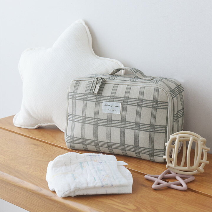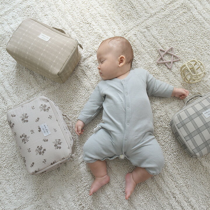 【ご希望の商品が売り切れの場合】「お問い合せ」リンクより、ご希望の「サイズ」「カラー」をご記入の上、「お知らせメール希望!」と送信してください。(取扱い終了などの場合もございます。)大容量で出し入れしやすい 柄ポーチ チェック 花柄 おむつポーチ/おむつポーチ 便利 おむつポーチ かわいい 着替え ポーチ 赤ちゃん 出産祝い ギフト/kukka ja puu クッカヤプー kbp【ネコポス対応】商品詳細大容量で出し入れしやすい、優しい彩りのおむつポーチ。パカッと開くのでおむつを取り出ししやすく、わずか約95gと軽い素材だから持ち歩きもノンストレスです。SPECsize:本体/約縦16×横25×奥行10cm持ち手の長さ/約9.5cm外側オープンポケット/約縦13×横25cm内側ギャザーポケット/約縦13l×横24.5cm重さ:約95g素材:フラワーアイボリー/レーヨン76%、ナイロン20%、リネン4%チェックベージュ、チェックグレー/レーヨン56%、ポリエステル38%、リネン6%裏地/ポリエステル100%原産国/製造国 :中国知っておいて頂きたいこと※商品写真は撮影条件により、実際のカラーと異なる場合がございます。実物に近いカラーに関しては、カラーバリエーション枠(カート横の商品画像)をご確認ください。※本来の目的以外で使用しないでください。※極めて重いもの、先の尖ったものを入れて使用しないでください。※無理な力や衝撃を与えたり、分解などしたりしないでください。※火気の近くや高温の場所で使用・保管はしないでください。※濡れ、摩擦、汗、日焼け等により、色落ち、変色することがありますので、ご注意ください。※洗濯時に色落ちする可能性がありますので、他の物と分けて洗濯してください。※ネットに入れて洗濯することをお勧めします。※アイロンや乾燥機は使用しないでください。お手入れ方法洗濯弱又は手洗い40℃までドライNG漂白NG色落ち注意タンブル乾燥NG日陰つり干し洗濯ネット使用大容量で出し入れしやすい 柄ポーチ チェック 花柄 おむつポーチ/おむつポーチ 便利 おむつポーチ かわいい 着替え ポーチ 赤ちゃん 出産祝い ギフト/kukka ja puu クッカヤプー kbp【ネコポス対応】たっぷり入って、とっても軽い。優しい彩りのおむつポーチ使う度にママもパパもほっこりする、そんな温かみのあるデザインのおむつポーチが出来上がりました。淡く優しい彩りで、ナチュラルなデザイン。お花を散りばめた柄や、カジュアルなチェック柄など3種類からお選びいただけます。もちろん見た目だけでなく、使いやすさも◎。たっぷり大容量サイズで、わずか95gと軽量。蓋がパカッと大きく開いておむつの出し入れをしやすいのもポイントです。パカッと開いて、おむつをさっと取れるたっぷり入るサイズ感で収納力はばっちり。たくさん入れても、コの字型につけたファスナーでパカッと開くため、おむつなどの出し入れもスムーズにできます。ダブルファスナー式で、開閉しやすいのもポイント。わずか約95gで、持ち歩きノンストレスママの荷物負担を軽くする機能が充実しているポーチはそれ自体が重くなってしまうことも。ただでさえ荷物の多いベビーとのお出かけで、少しでもママの負担を減らしたい。そんな思いから生まれた、わずか約95gの軽量おむつポーチです。柔らかな素材でコンパクトにくたっとし過ぎないように底面から蓋にかけてのみ中材を使用。ポーチの中身が少ない日は、その分小さく折り畳んで持ち歩くこともできます。毎日使いやすいポイントポケット付きで整頓上手ポーチの内側に面ファスナー付きの大きなポケットが付いており、おしりふきなどを入れることができます。ギャザーや面ファスナーで飛び出しを防ぎます。外側背面にはオープンポケットがひとつ。タオルやゴミ袋などサッと取り出して使いたい物を入れておけます。引っ掛けやすい持ち手付き上部に持ち手をつけた、小さなトラベルバッグのようなデザイン。ベビーカーフックに引っかけたり、バッグの中から取りだしたりするときも便利です。ナチュラルな雰囲気のNEW素材さらっとリネン混素材ほんのりシャリ感のある、リネン混素材を採用。ネップにより、生地表面に凹凸が生まれ、風合いや温かみを感じさせてくれます。季節問わず、一年を通して使いやすい素材です。また、ホルムアルデヒドの検査の結果、厚生労働省が定める乳幼児用の基準値をクリア。安心してお使いいただけます。丸洗いもOKランドリーネットに入れてお洗濯もOK。洗濯後のシワも気になりにくい素材でお手入れも簡単です。同柄の哺乳瓶ポーチと合わせ使いも◎kukka ja puuの「哺乳瓶ポーチ」も同じ柄で展開していますので、一緒に使えば統一感がアップ。また、おむつを卒業した後は着替えポーチとしてなど、長くお使いいただけます。日々に寄り添う、やさしい彩りの3バリエkukka ja puuらしいシンプルなテイストながら、お花やチェック柄で遊び心を添えています。中心のロゴがワンポイントに。 関連商品はコチラたっぷり収納できる 花柄 チェッ