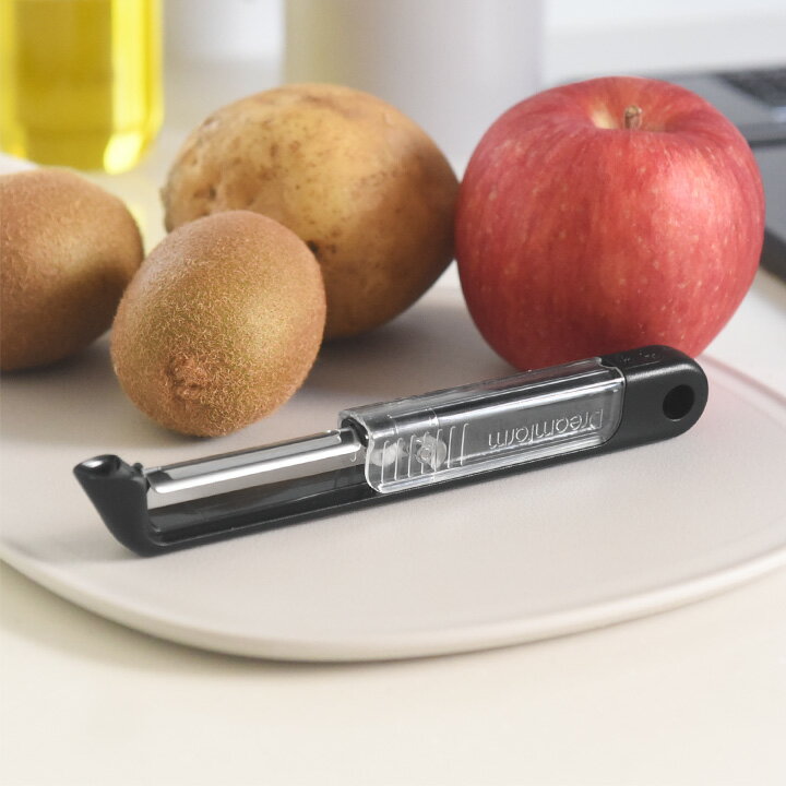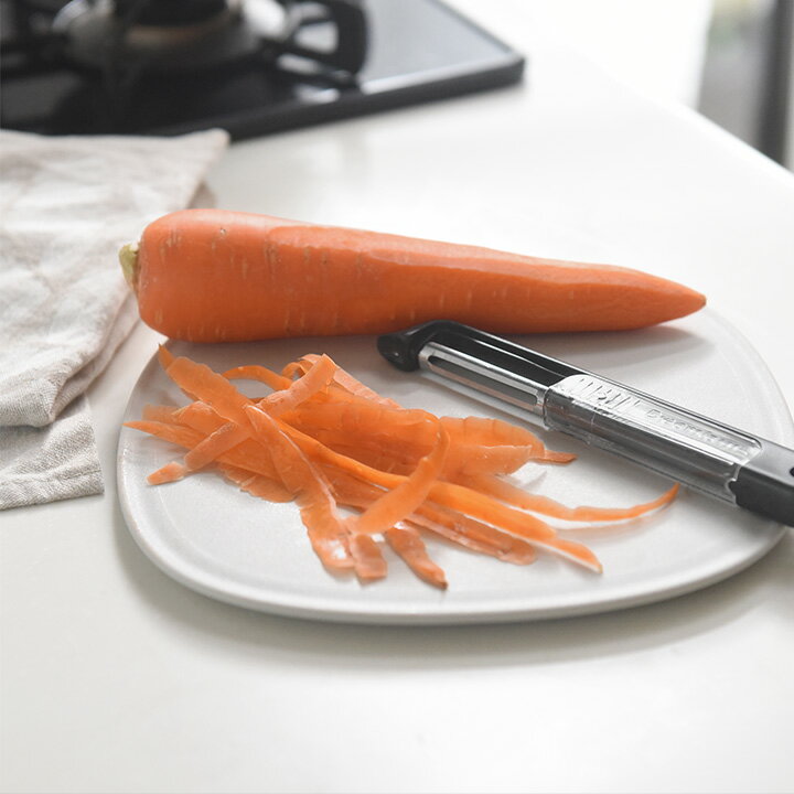 【ご希望の商品が売り切れの場合】「お問い合せ」リンクより、ご希望の「サイズ」「カラー」をご記入の上、「お知らせメール希望!」と送信してください。(取扱い終了などの場合もございます。)切れ味が持続する縦型ピーラー/ピーラー縦型 縦型ピーラー 皮むき機 皮むき器 キッチングッズ/Dreamfarm ドリームファーム【ネコポス対応】商品詳細刃のカバーにシャープナー機能付き!しまうと同時に研がれるという驚きのピーラー。握りやすく皮剥きしやすいI型デザインで、お料理が捗るのも嬉しいポイントです。SPECsize:約幅2.5×厚さ1.5×高さ19cm重さ:約40g素材:ABS樹脂、ステンレス鋼原産国/製造国:中国※食器洗浄機使用不可知っておいて頂きたいこと※商品写真は撮影条件により、実際のカラーと異なる場合がございます。実物に近いカラーに関しては、カラーバリエーション枠(カート横の商品画像)をご確認ください。※お子様の手の届かない安全な場所に保管してください。※皮むき刃は、鋭利ですので直接手を触れないでください。※皮を引く方向に手を添えないでください。ケガをする危険性があります。※冷凍食品やかぼちゃの皮など硬い食材には使用しないでください。※刃が食材に引っ掛り、スムーズにむけない場合は使用しないでください。※火のそばに置かないでください。※たわしやみがき粉を使用すると傷がつくことがあります。※お取り扱いの際は、金属部分で手や指を怪我しないようにご注意ください。※ご使用後はよくすすぎ、水気を切って乾燥させてください。切れ味が持続する縦型ピーラー/ピーラー縦型 縦型ピーラー 皮むき機 皮むき器 キッチングッズ/Dreamfarm ドリームファーム【ネコポス対応】シャープナーが合体!しまうたび切れ味復活ピーラー目からウロコの新発想キッチンアイテムを開発する、オーストラリア発のブランドDreamfarm(ドリームファーム) 。こちらの縦型ピーラーは、なんと刃のカバーにシャープナー機能付き!しまうと同時に研がれるという驚きのピーラーです。ピーラーといえば使う頻度は高いのに、包丁とは違って自分で研ぐのが難しく、いつの間にか切れ味が悪くなっていることも。そんなお悩みを解決してくれて、研ぐ手間いらずでずっとストレスフリーに使えます。カバーにシャープナーが一体化刃のカバーの内側にシャープナー機能が付いており、しまうたびに切れ味がもどる新感覚ピーラー。ただ使う・しまうを行うだけで、刃先を削ることなく尖った状態に整えて、手間なく切れ味が続きます。刃は切れ味バツグンの日本製ピーラーの刃は日本製ステンレスを使用。するりと滑るような切れ味を、シャープナー付きカバーでさらに長く維持できます。まな板いらずで野菜スライスも握りやすく皮剥きしやすいI型デザイン。にんじんやごぼうなどの長い野菜も扱いやすく、鍋の上で直接スライスするのにもぴったりです。お味噌汁やお鍋の具材を準備するのもまな板いらず。調理のちょっとした効率化で、日々の食事準備がぐっと快適に。野菜を薄くスライスできて、火の通りがはやいのも◎。包丁感覚でササっと扱える握りやすいI型デザインは、小回りが利き、小型包丁感覚で扱いやすいのもポイント。縦方向に剥くだけでなく、りんごをくるくると回して剥くこともできます。刃の角度を調整しやすいので、小さい食材、凹凸のあるじゃがいも、皮の薄いトマトの皮剥きも簡単。先端部分はじゃがいもなどの芽とりになっています。毎日使いしやすいポイントコンパクトに収納スリムなI型のシャープナーは、収納場所をとりません。引き出しの中でもツールスタンドでも、すっきりと収納しておけます。カバーを被せて安全に保管使わない時は常に刃をカバーにしまうことで、うっかり触れてしまうこともなく安心安全。アウトドアでの持ち運びにも便利です。関連商品はコチラ日本製 サラダスピナー ステンレス 野菜4950 円刃がない トミタ式おろし金 おろし金 日3960 円蒸気であたためる冷凍ごはん容器 2個組/1210 円