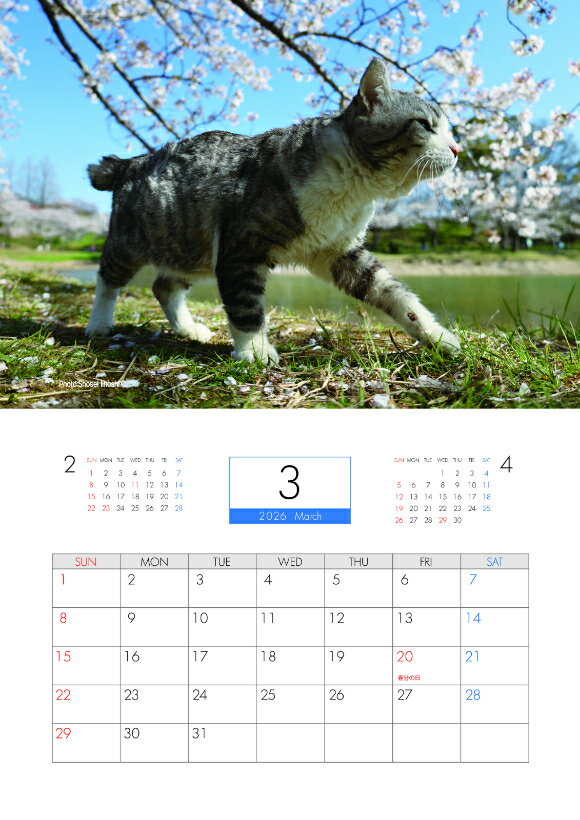 【予約販売】 旅猫 ニャン吉 2026年 壁掛けカレンダー KK26096