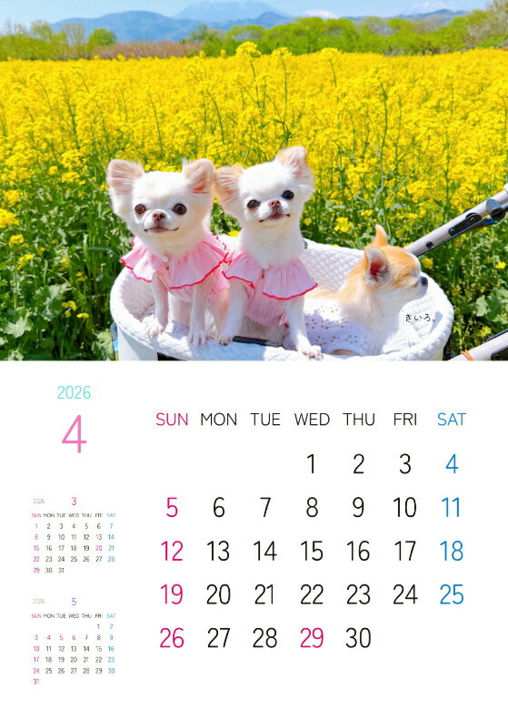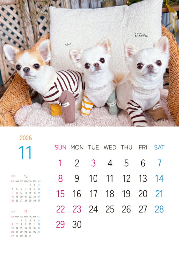 【予約販売】 おもちちゃん&おかゆちゃん&おしるこくん チワワ 犬 2026年 壁掛けカレンダー KA26188