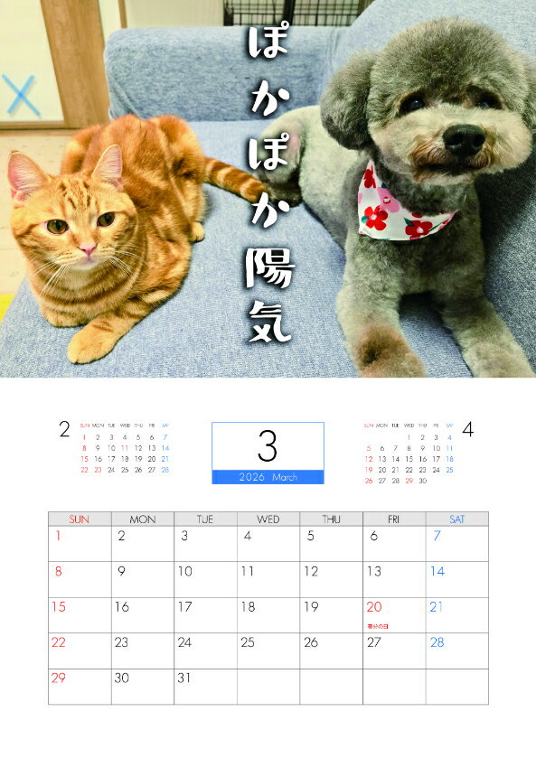 【予約販売】 犬と猫の親バカ日記 2026年 壁掛けカレンダー KA26207